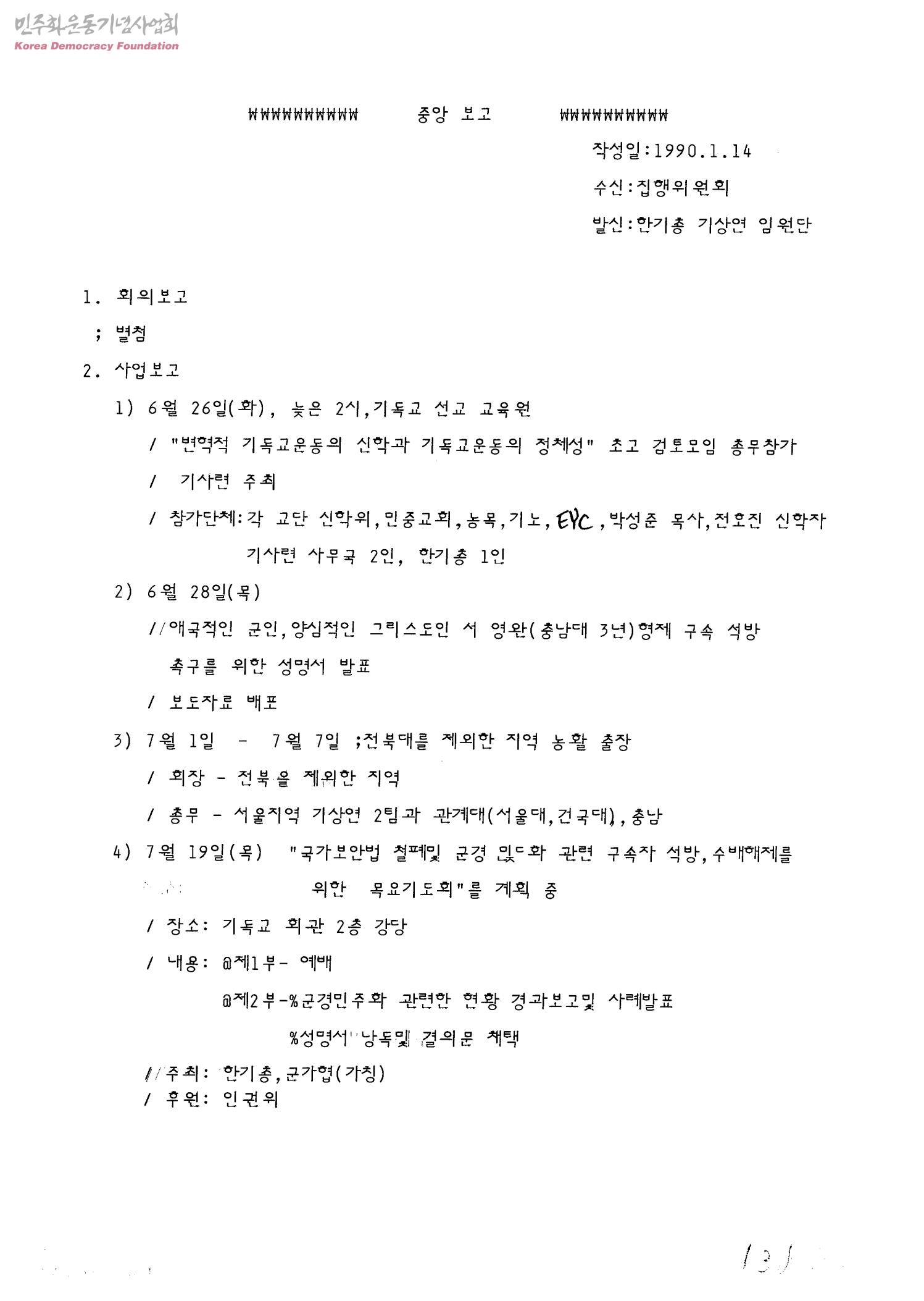 [한기총 기상연 임원단이 집행위원회에게 보내는 중앙보고에 관한 수발신문서]