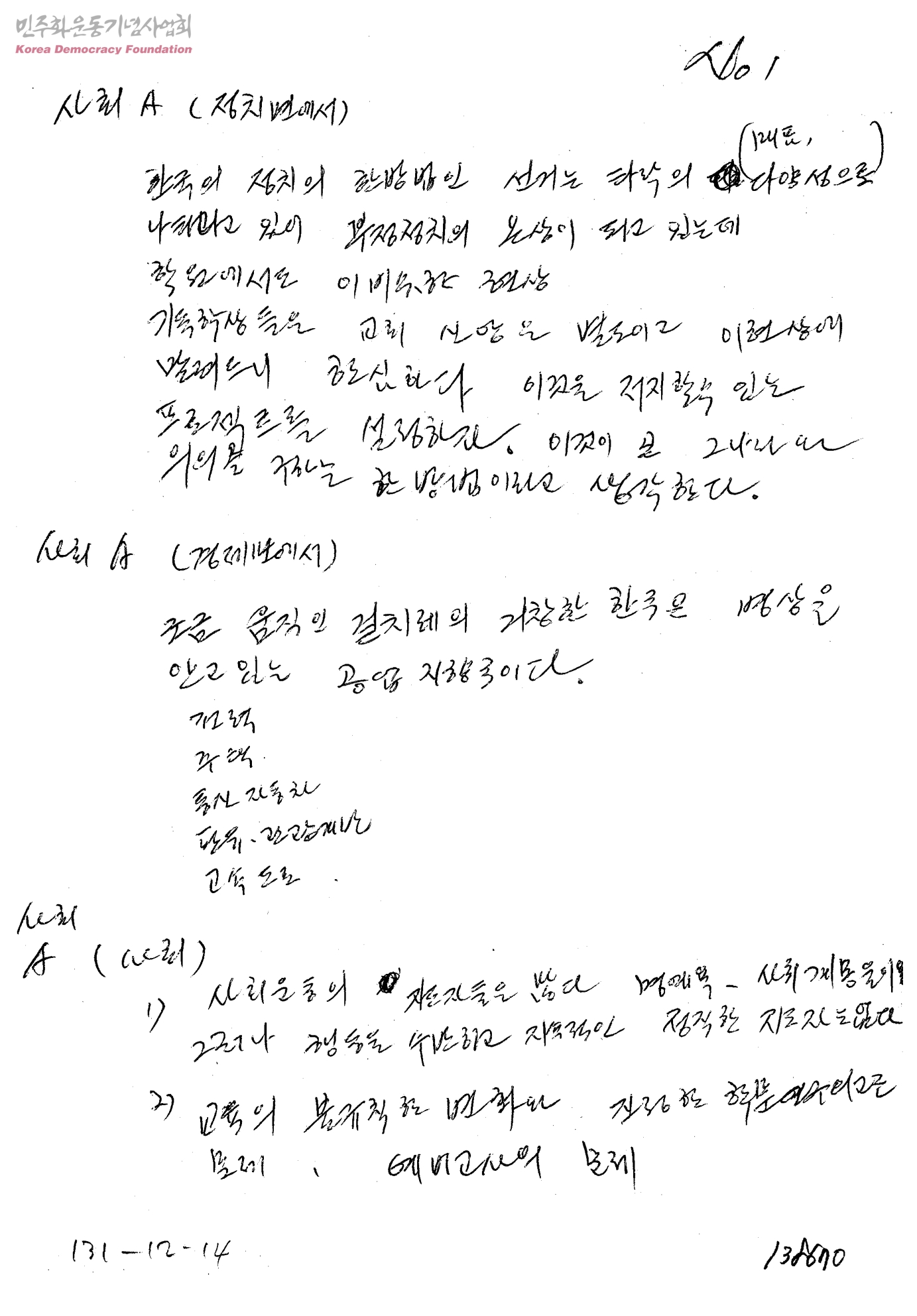 [사회 A(정치면)에서의 자필메모묶음]