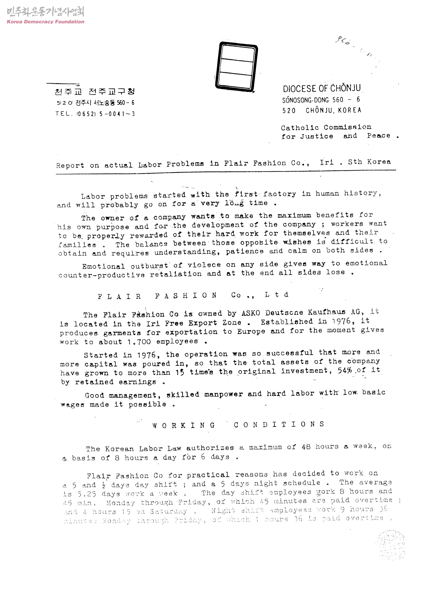 Report on actual Labor Problems in Fashion iri.Sth Korea