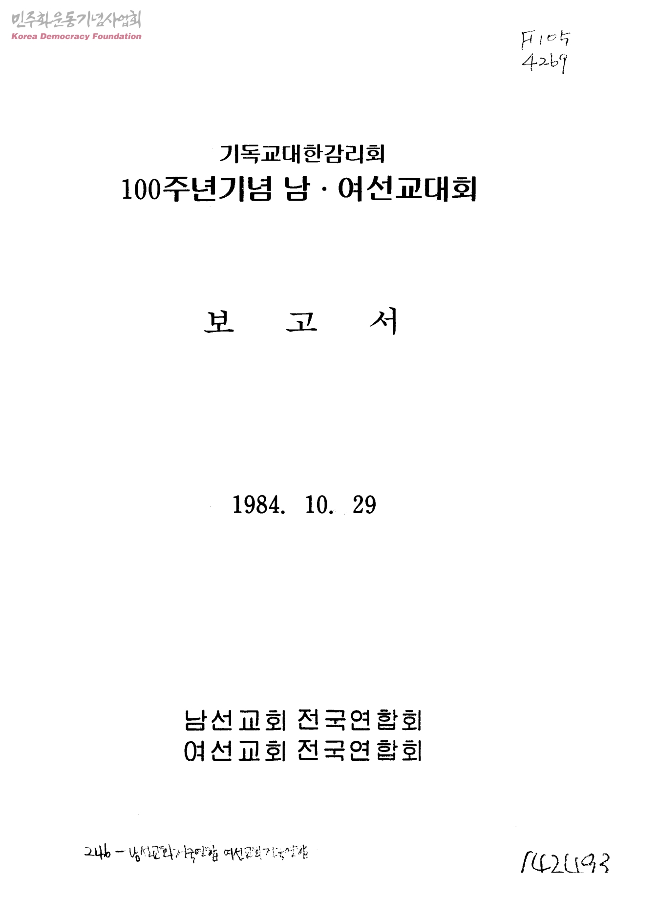 기독교대한감리회 100주년기념 남ㆍ여선교대회보고서