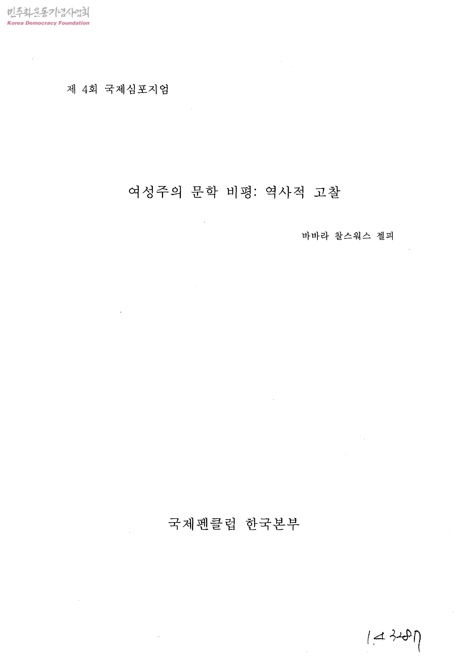 제4회 국제심포지엄-여성주의 문학 비평: 역사적 고찰