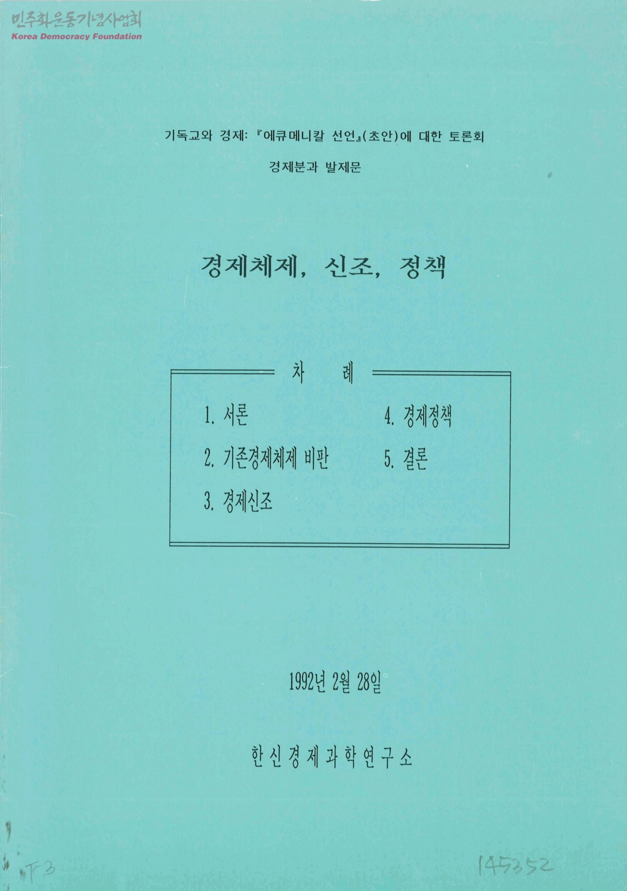 기독교와 경제:에큐메니칼 선언(초안)에 대한 토론회 경제분과 발제문-경제체제, 신조, 정책