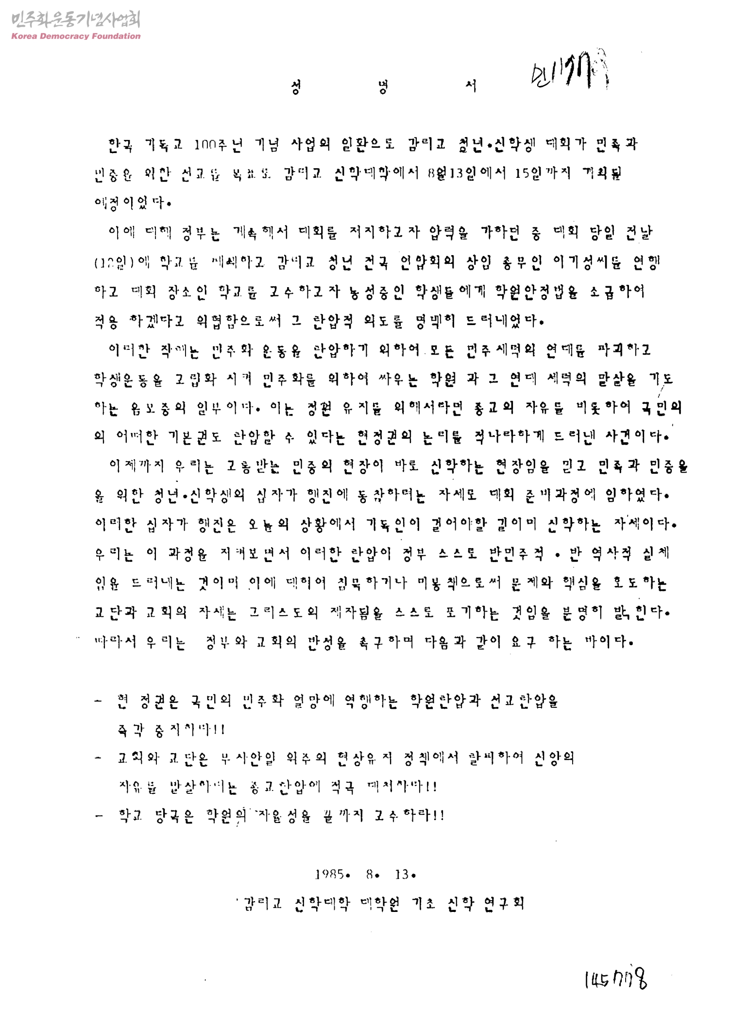 성명서-감리교 청년 신학생 대회 탄압 관련