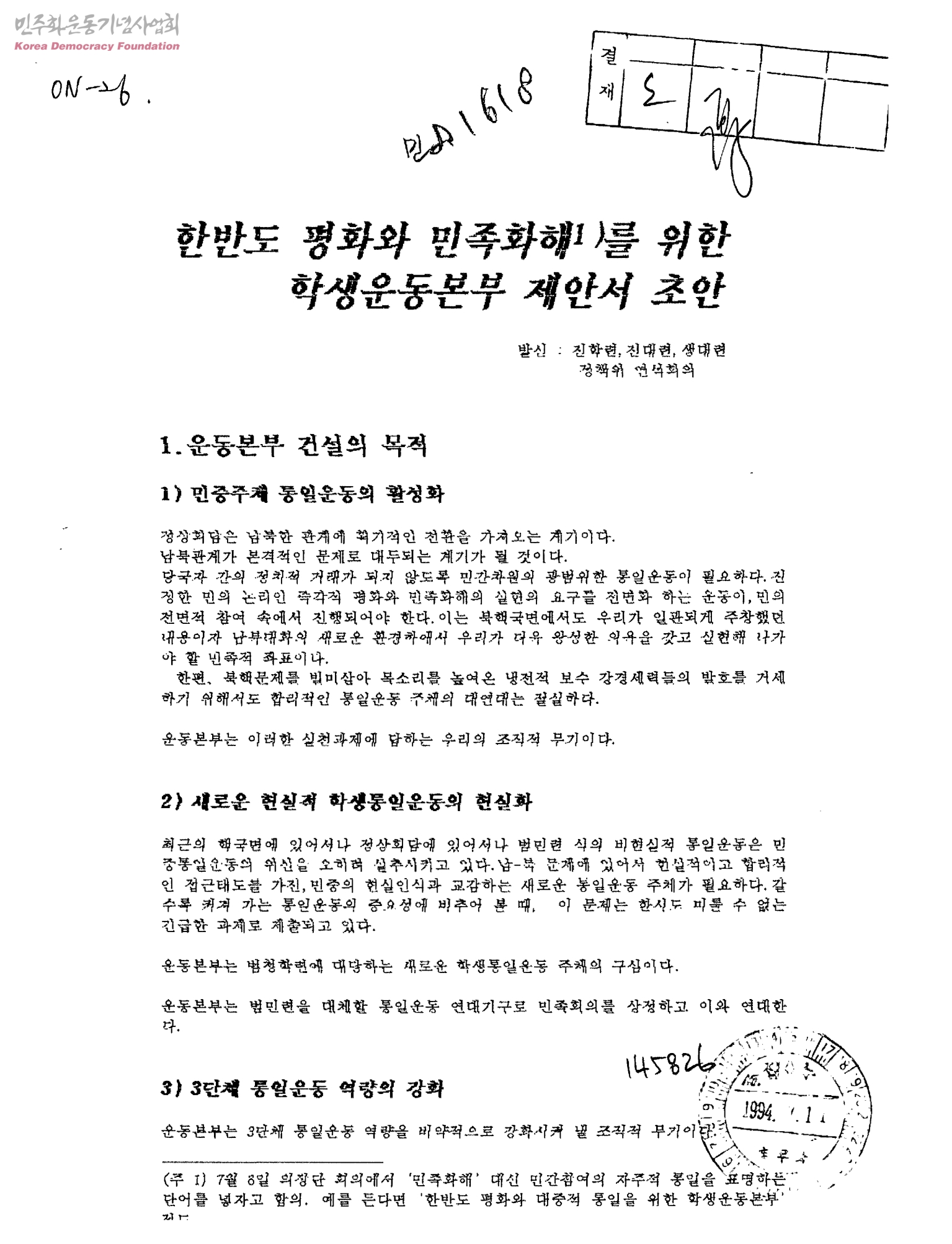 한반도 평화와 민족화해를 위한 학생운동본부 제안서 초안