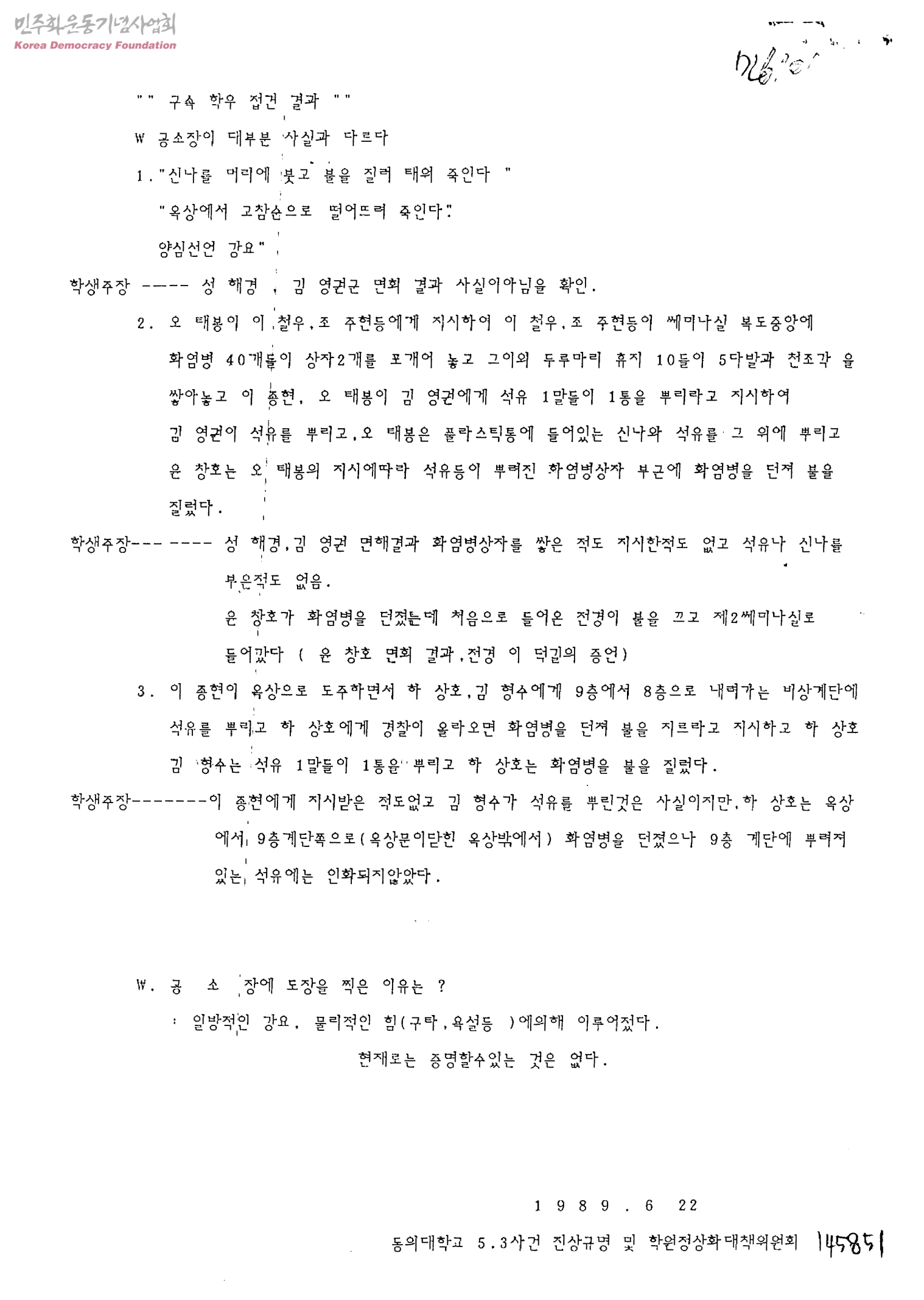 동의대학교 5.3사건 구속학우 접견 결과