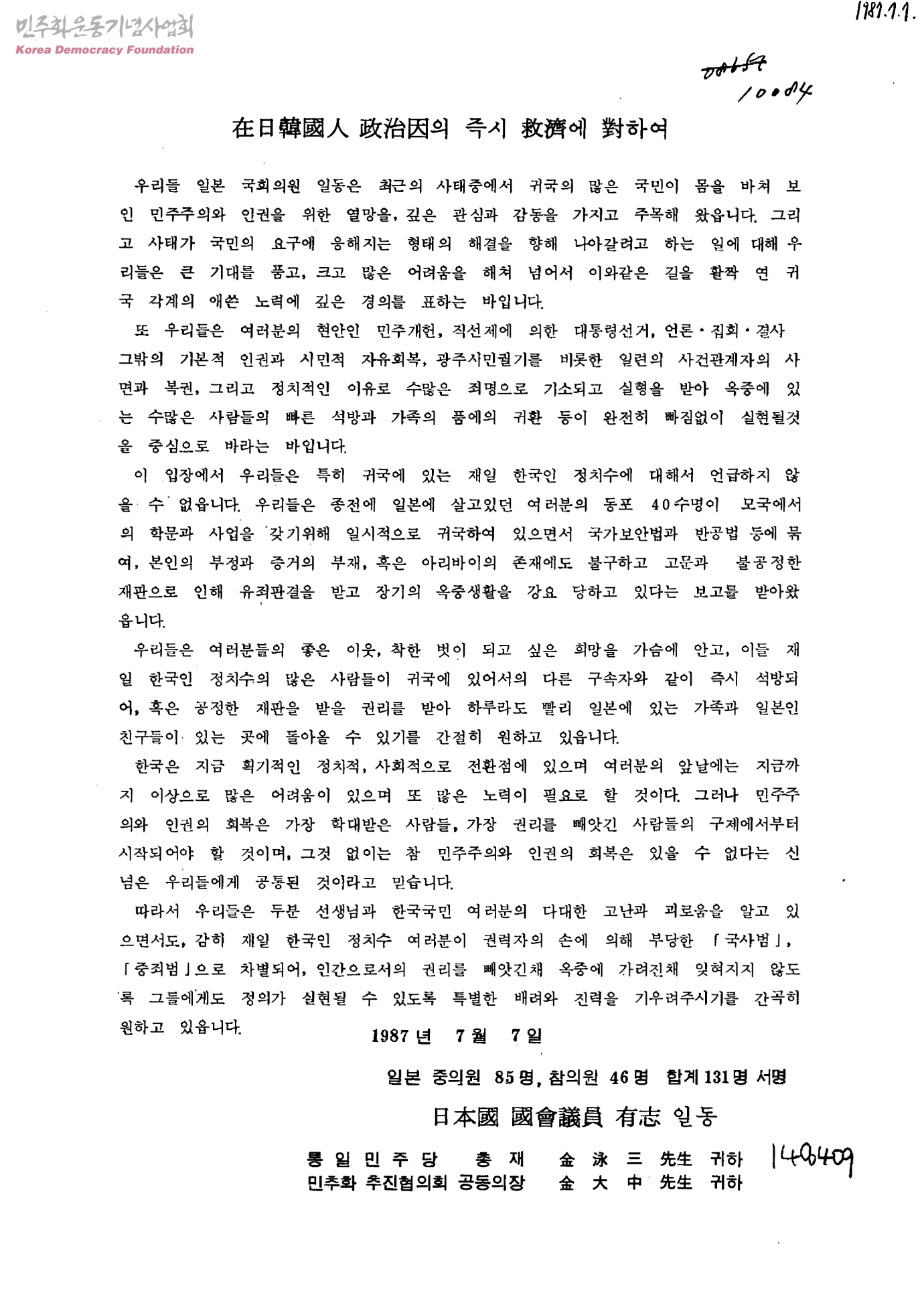 - 日本國 國會議員 有志 일동