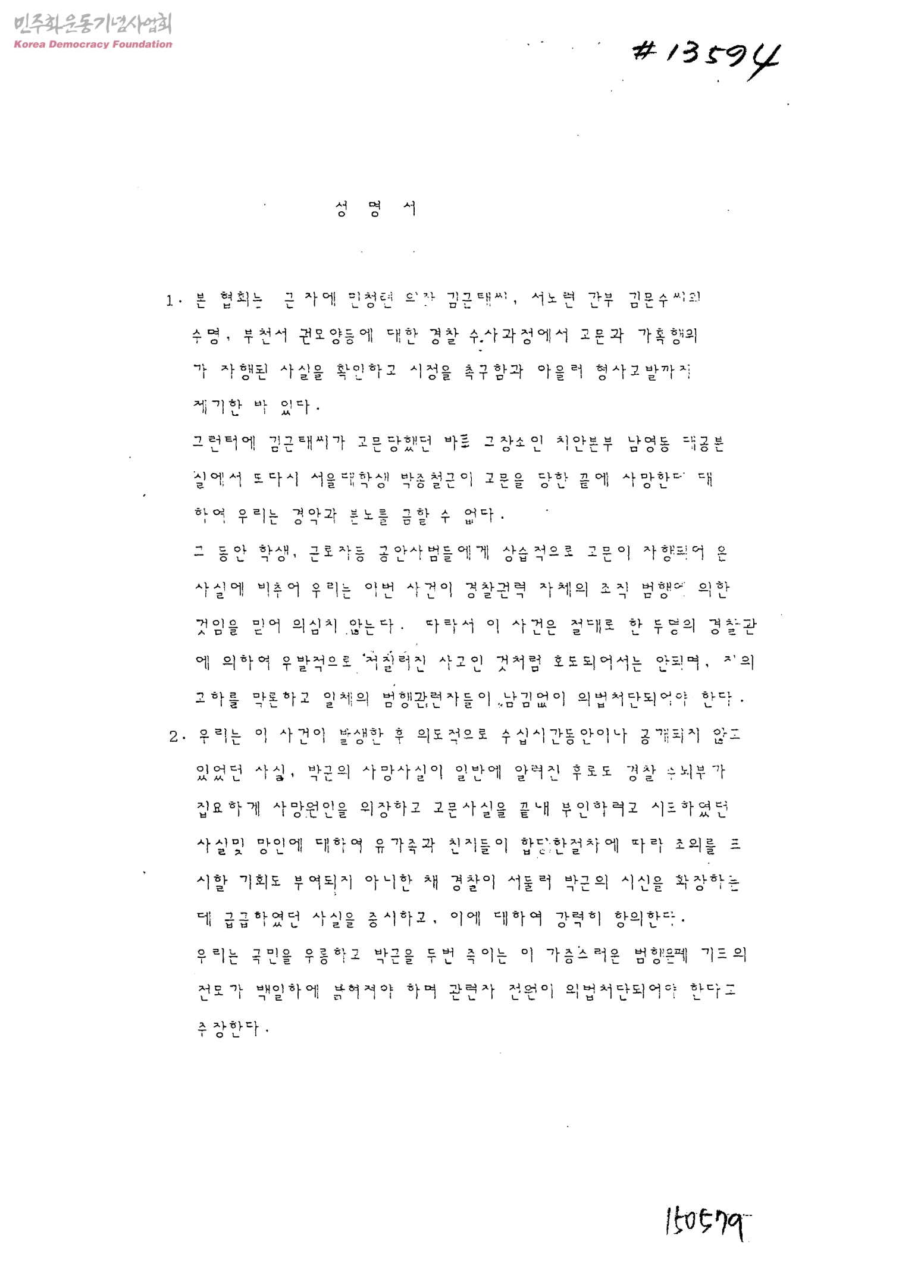 성명서[고문반대운동]