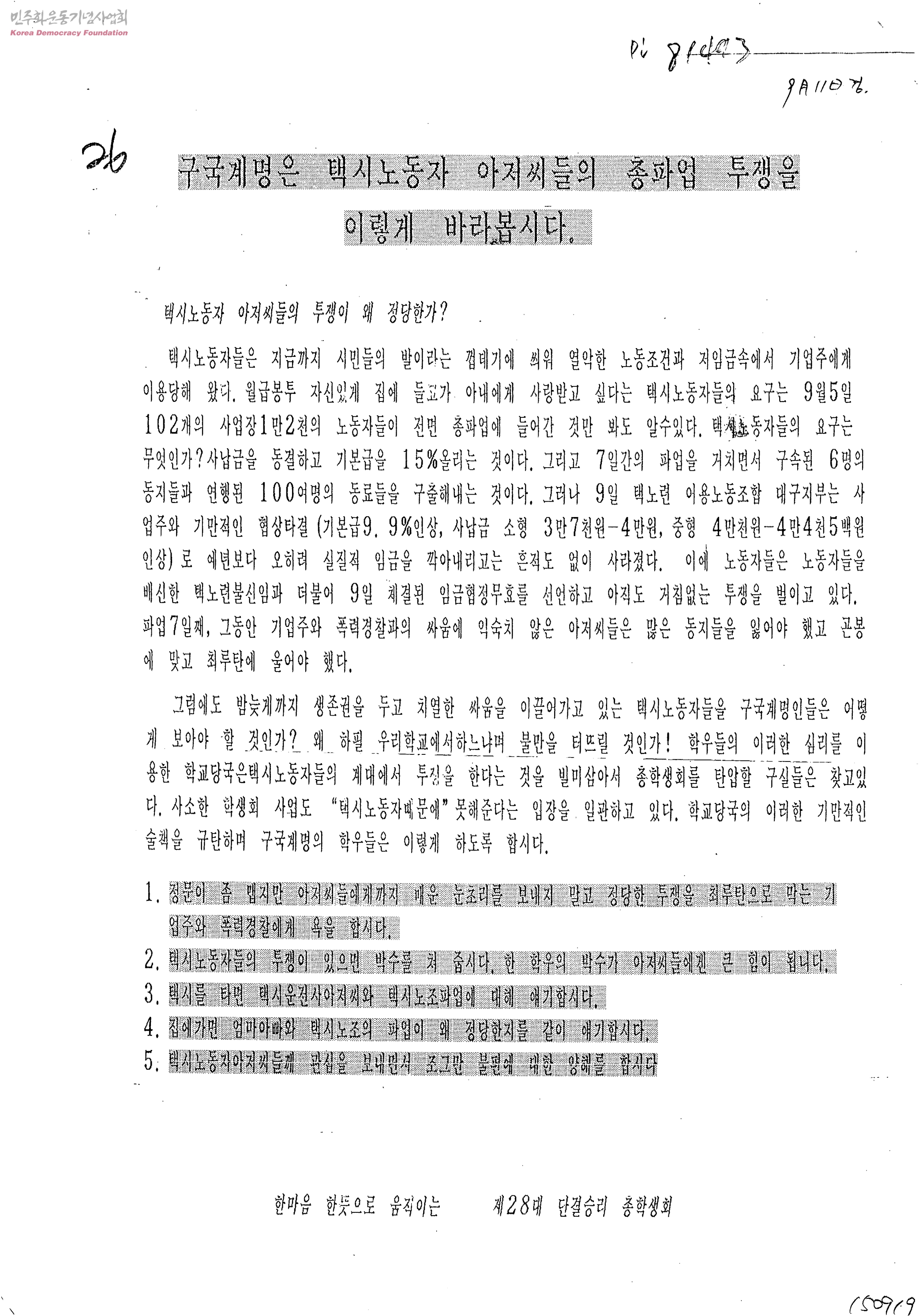 구국계명은 택시노동자 아저씨들의 총파업 투쟁을 이렇게 바라봅시다