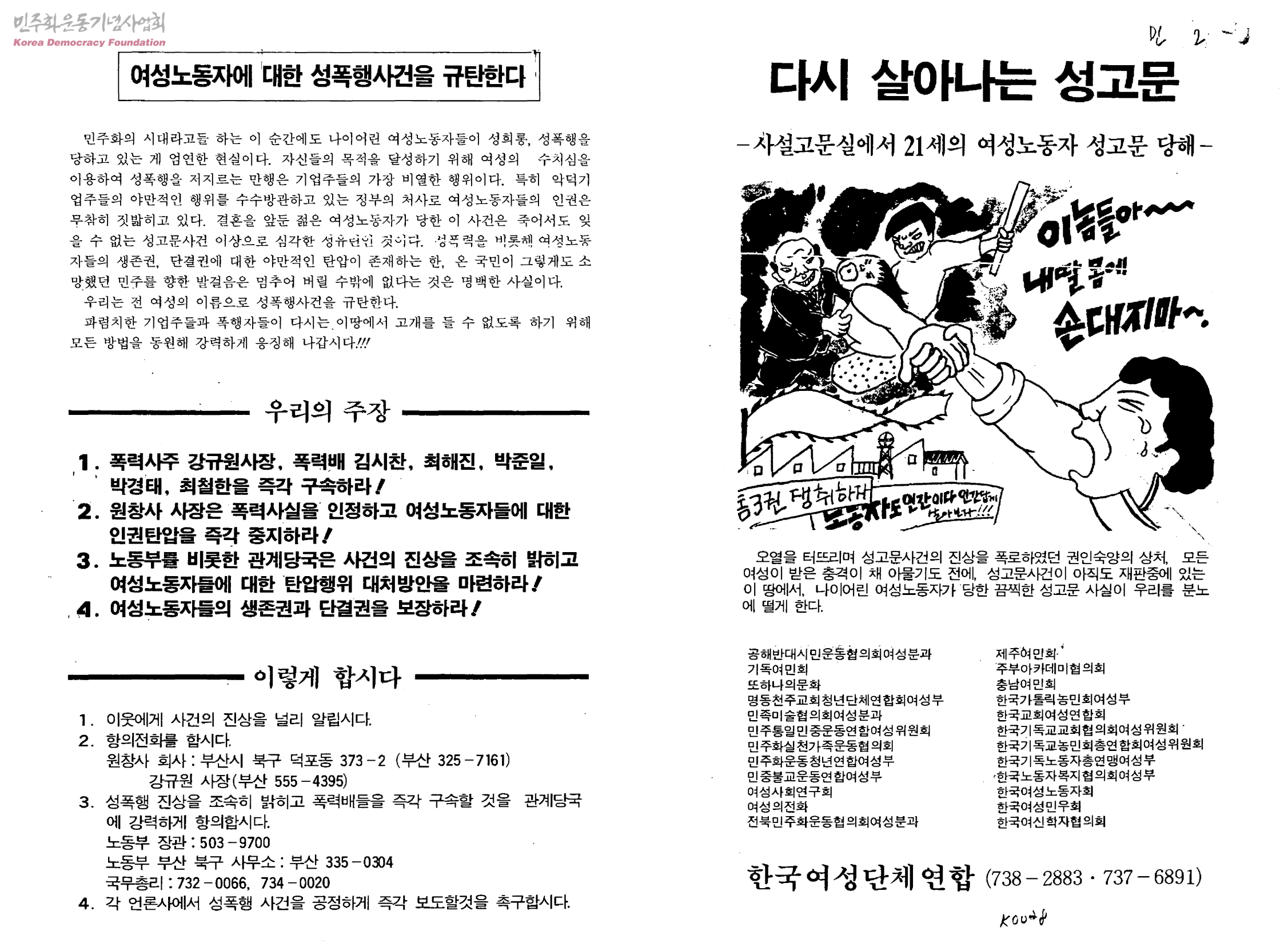 다시 살아나는 성고문-사설고문실에서 21세의 여성노동자 성고문 당해