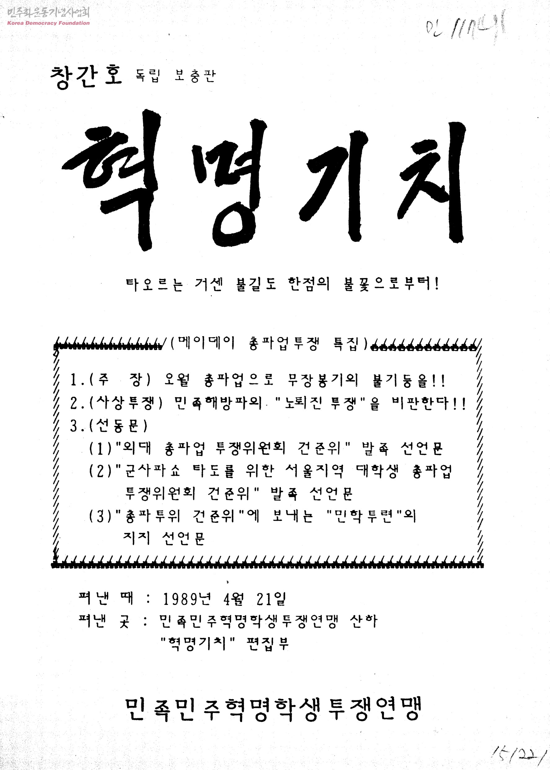 혁명기치 창간호 독립 보충판