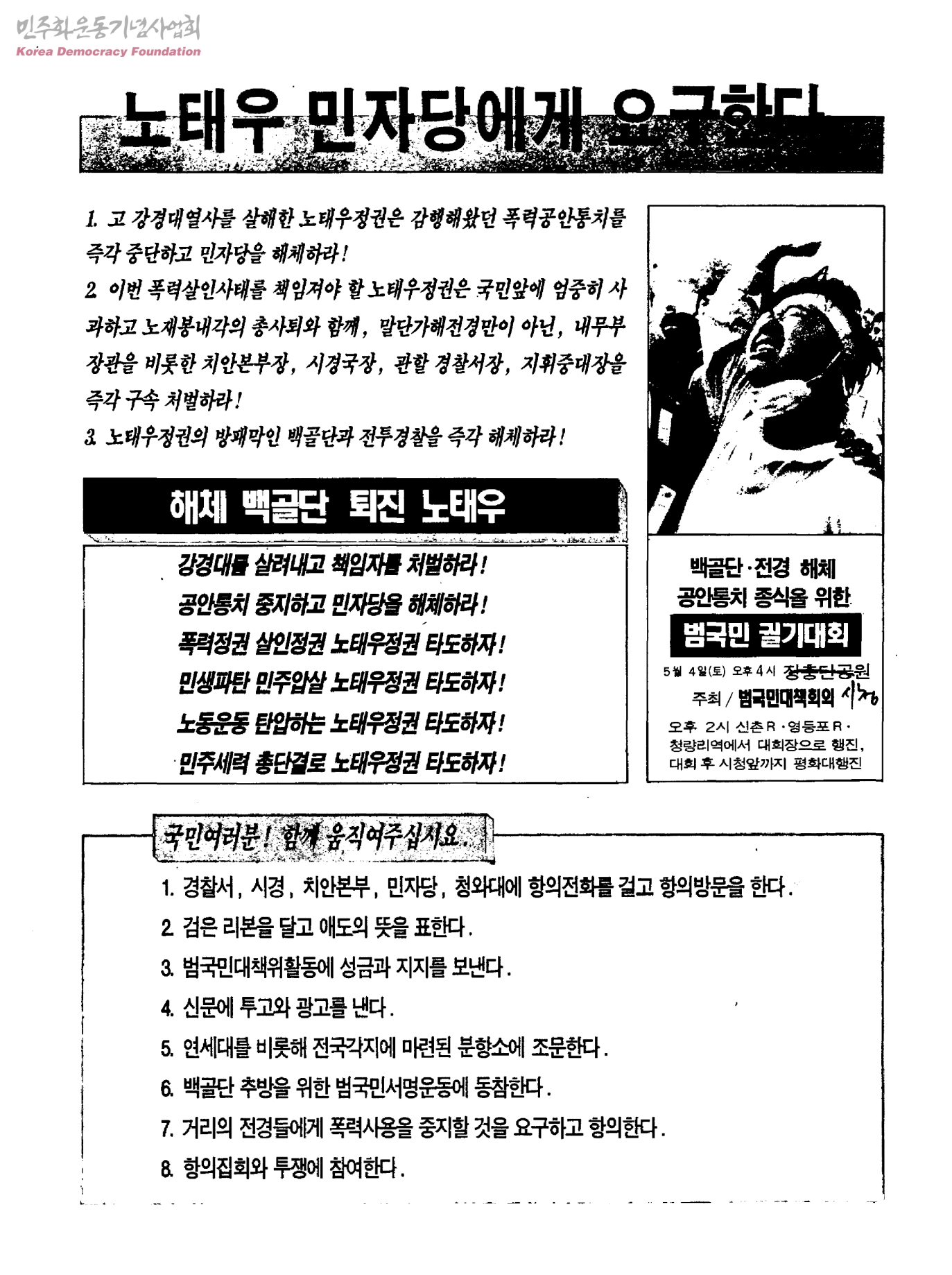 - 고강경대열사폭력살인규탄과공안통치종식을위하범국민대책회의
