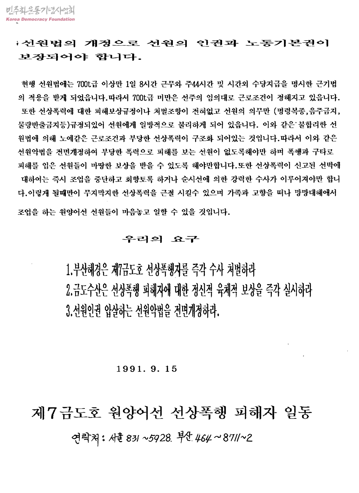 선원법의 개정으로 선원의 인권과 노동기본권이 보장되어야 합니다