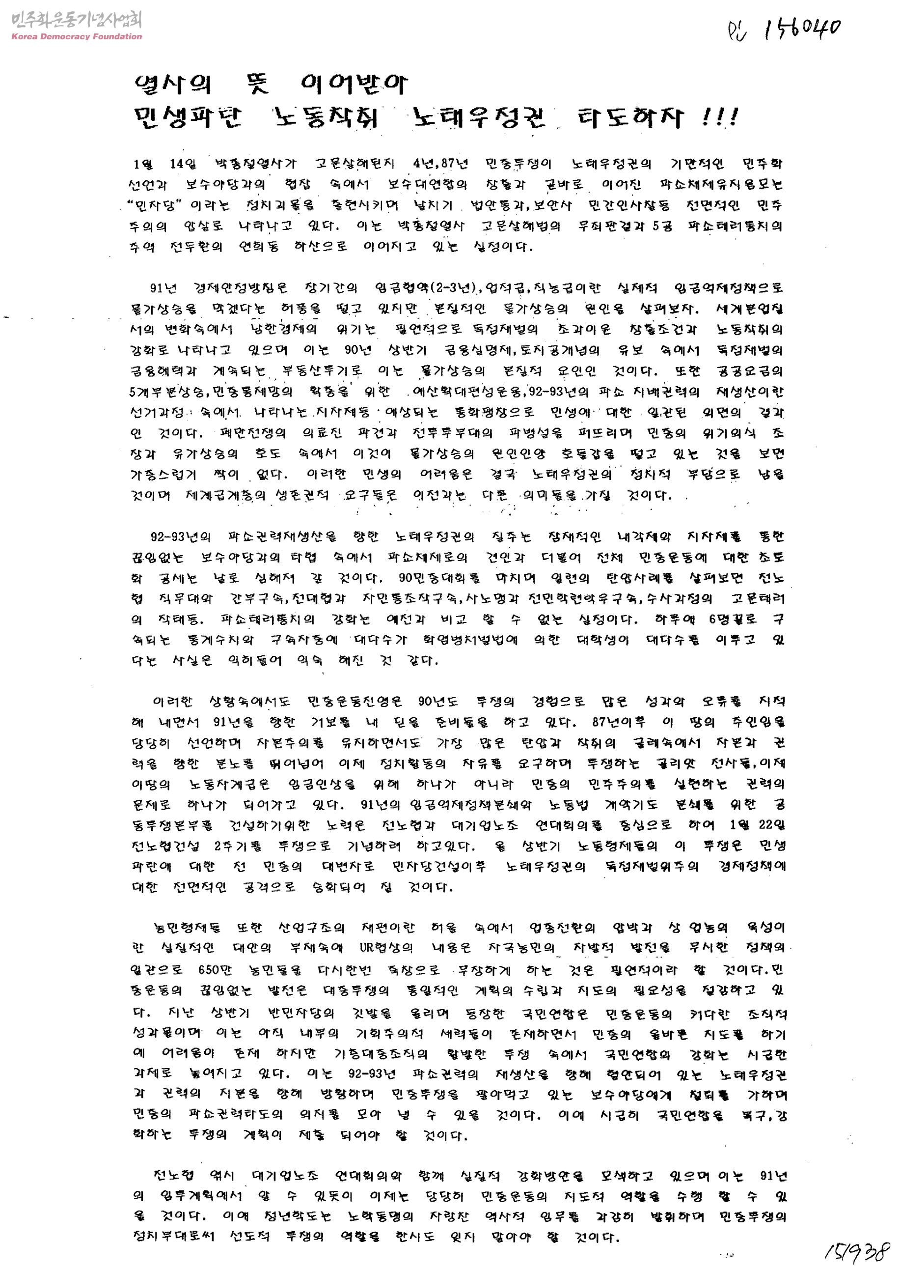 열사의 뜻 이어받아 민생파탄 노동착취 노태우정권 타도하자