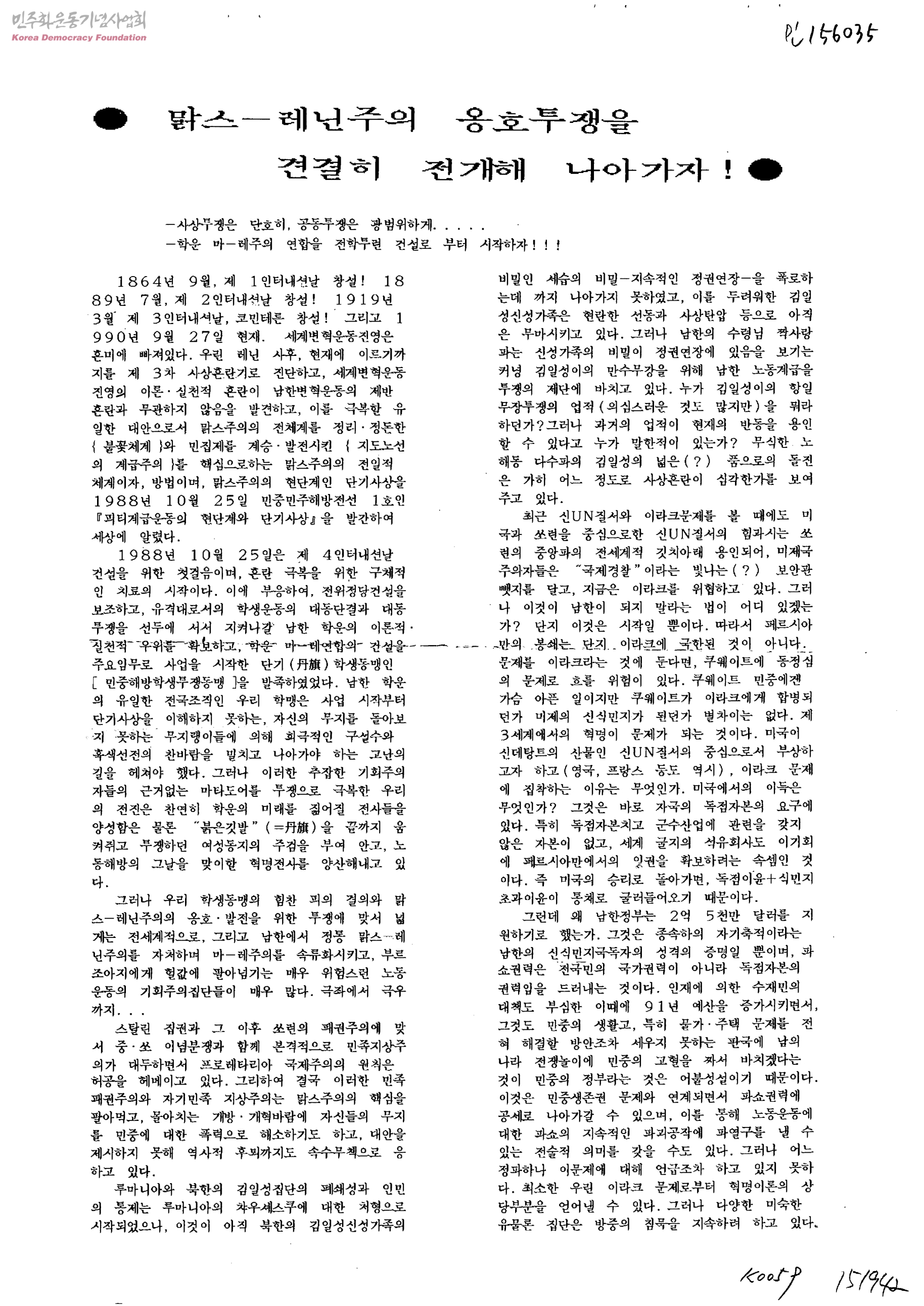 맑스-레닌주의 옹호투쟁을 견결히 전개해 나아가자