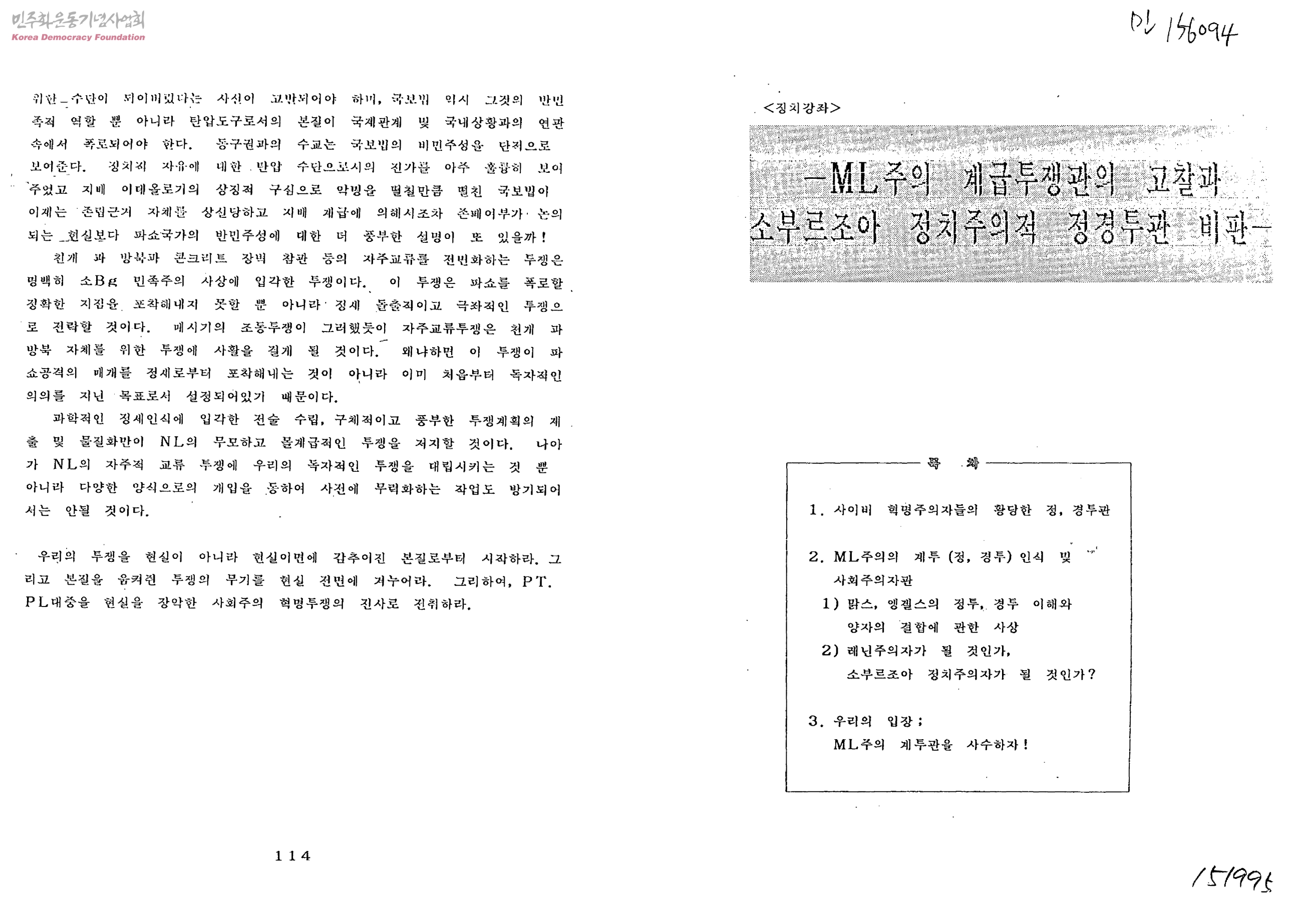 ML주의 계급투쟁관의 고찰과 소부르조아 정치주의적 정경투관 비판