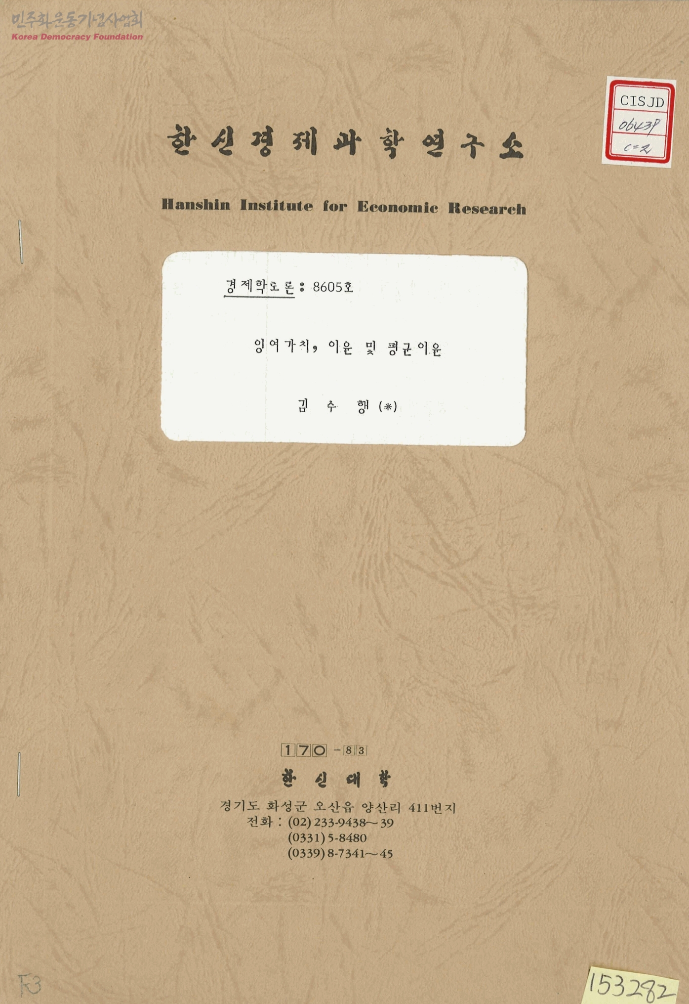 - 한신경제과학연구소