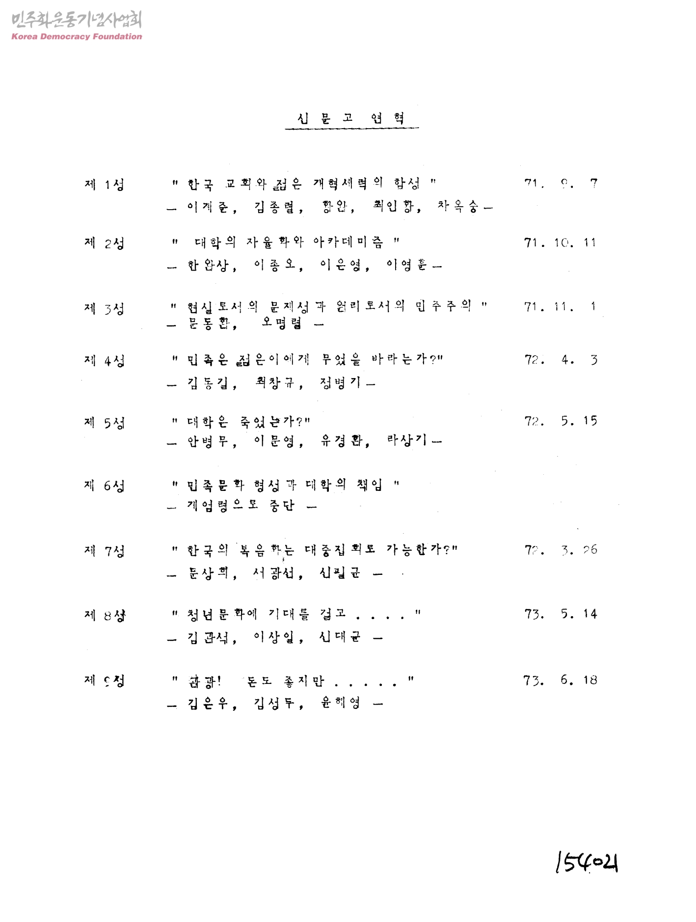 - 생산자 및 기증자가 ‘박용수’인 사진의 사용은 구매신청을 클릭하여 직접 사진 구매 신청을 하실 수 있습니다. 생산자 및 기증자가 ‘경향신문사’인 사진의 사용은 경향신문사 담당자(02-3701-1635)를 통해 구매하실 수 있습니다. 그 외의 생산자 및 기증자는 민주화운동기념사업회 사료관 담당자( hyunchaek@kdemo.or.kr / 02-6440-8961 )에 문의바랍니다.