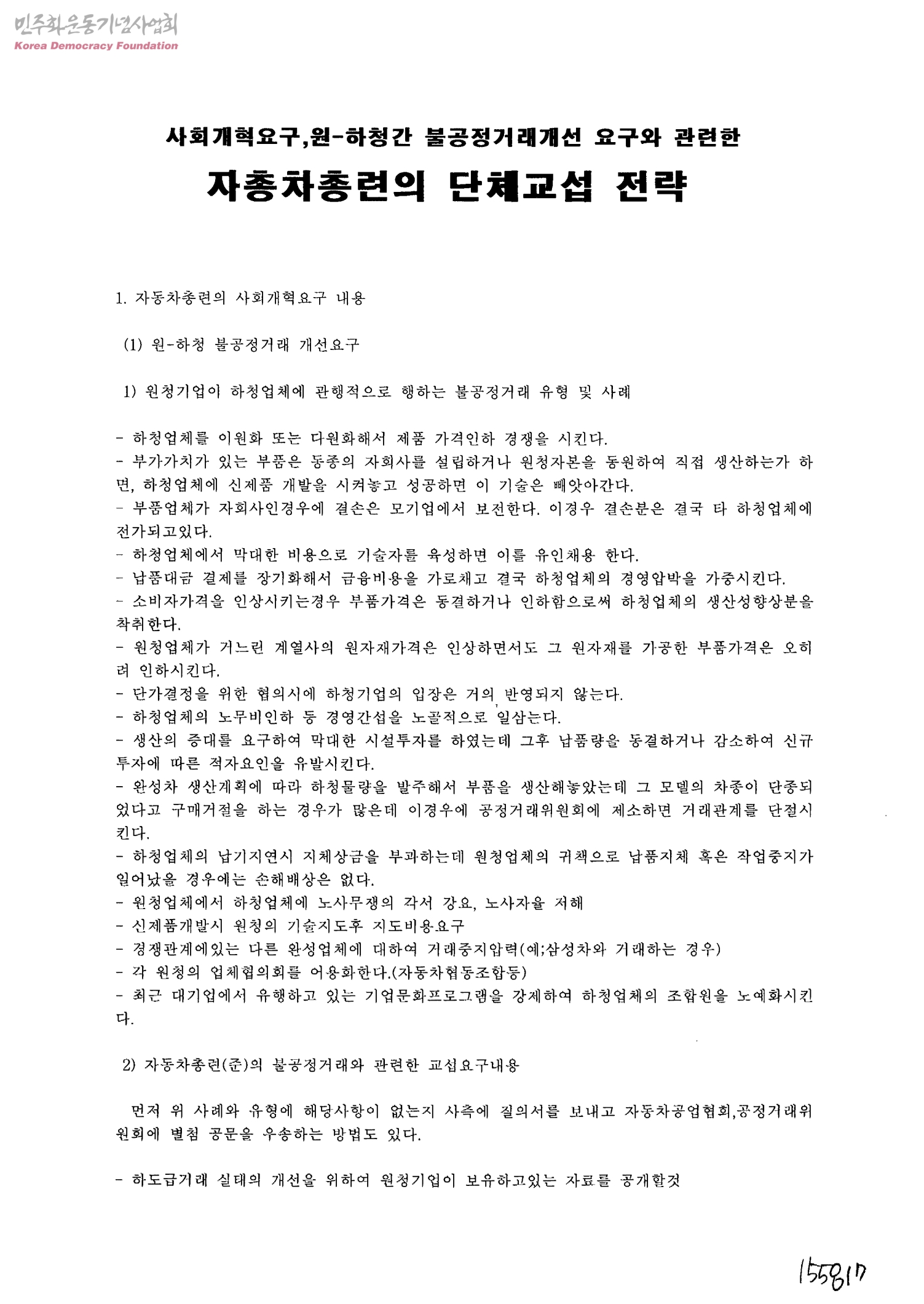 사회개혁 요구, 원-하청간 불공정거래개선 요구와 관련한 자총차총련의 단체교섭 전략