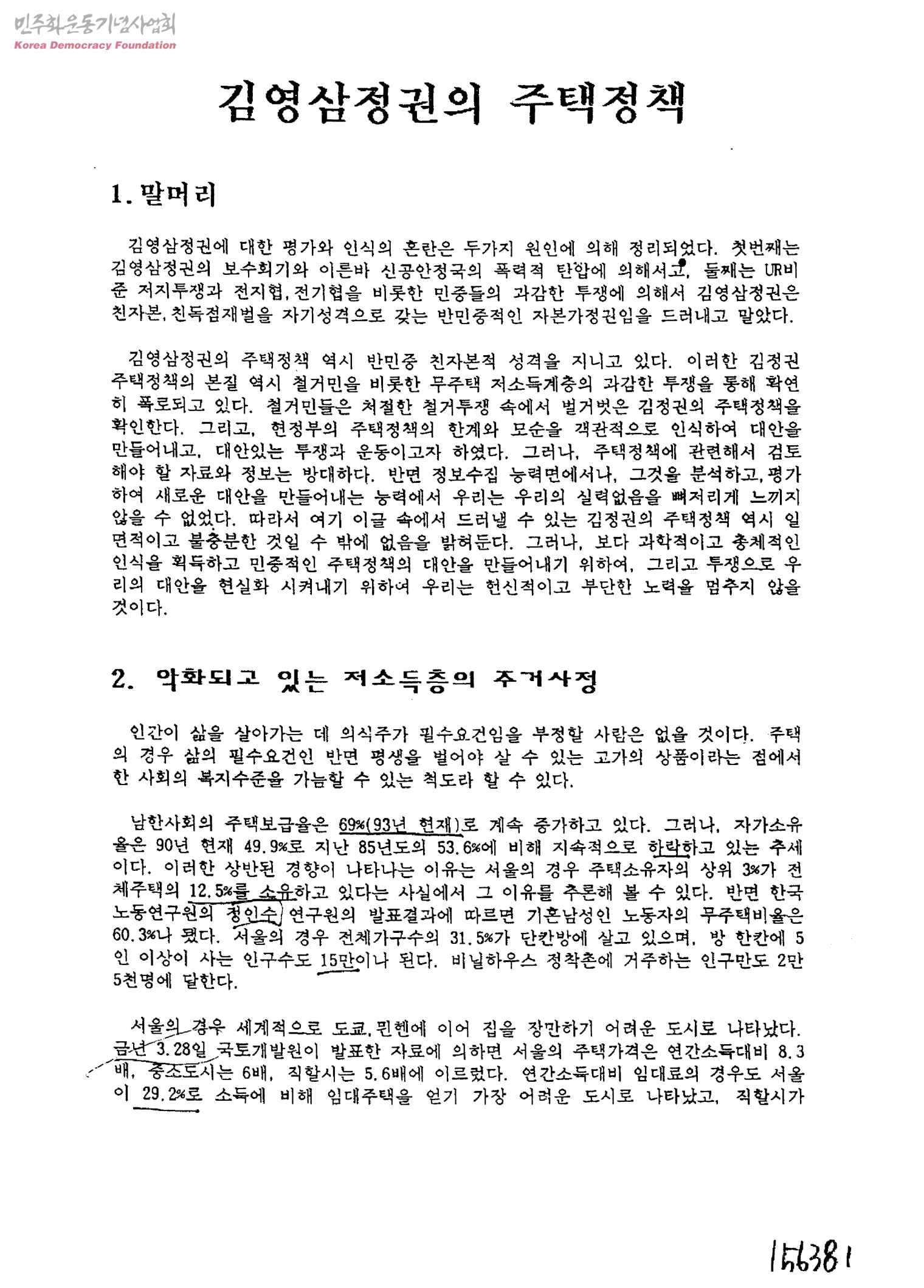 김영삼정권의 주택정책