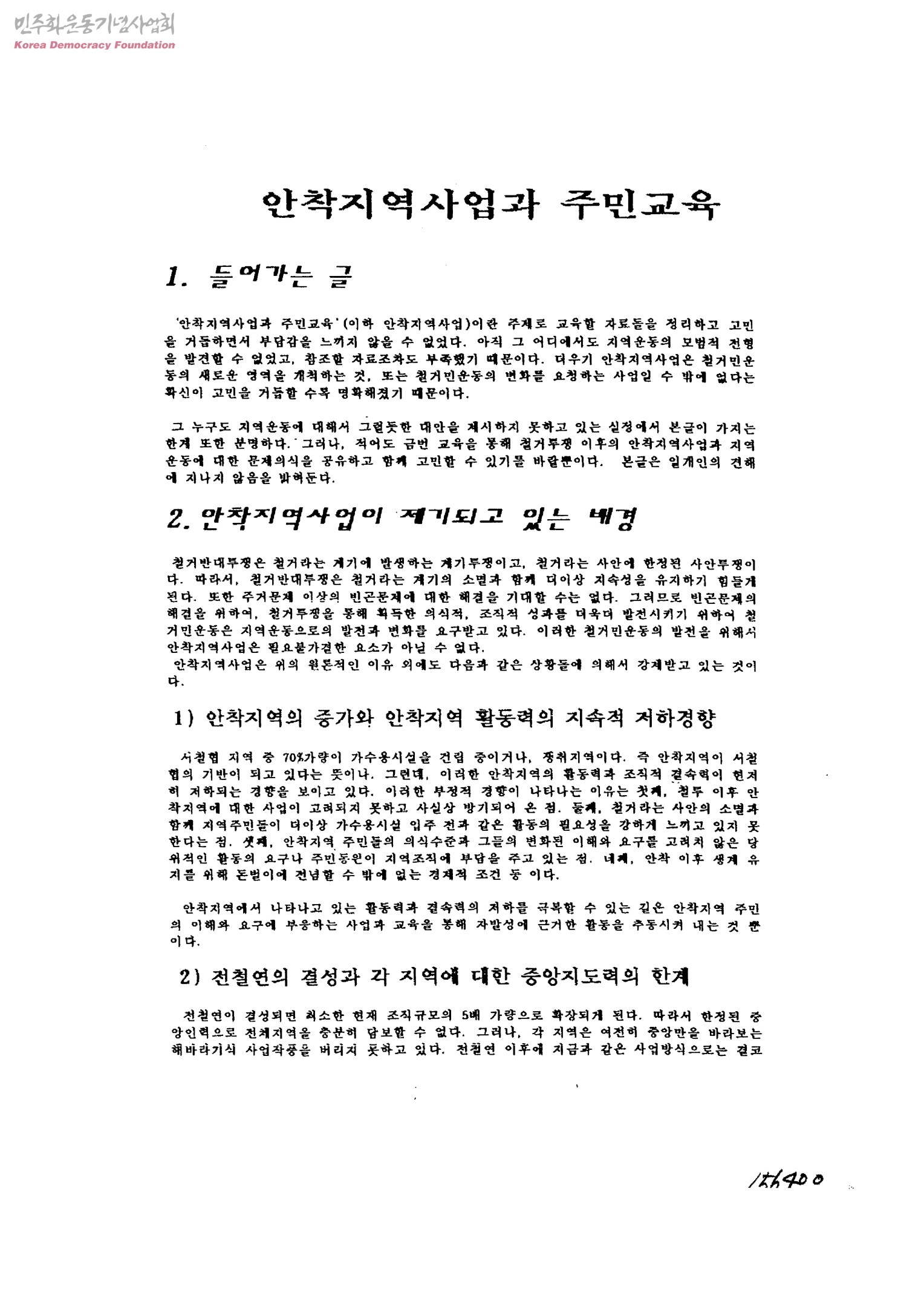 안착지역사업과 주민교육