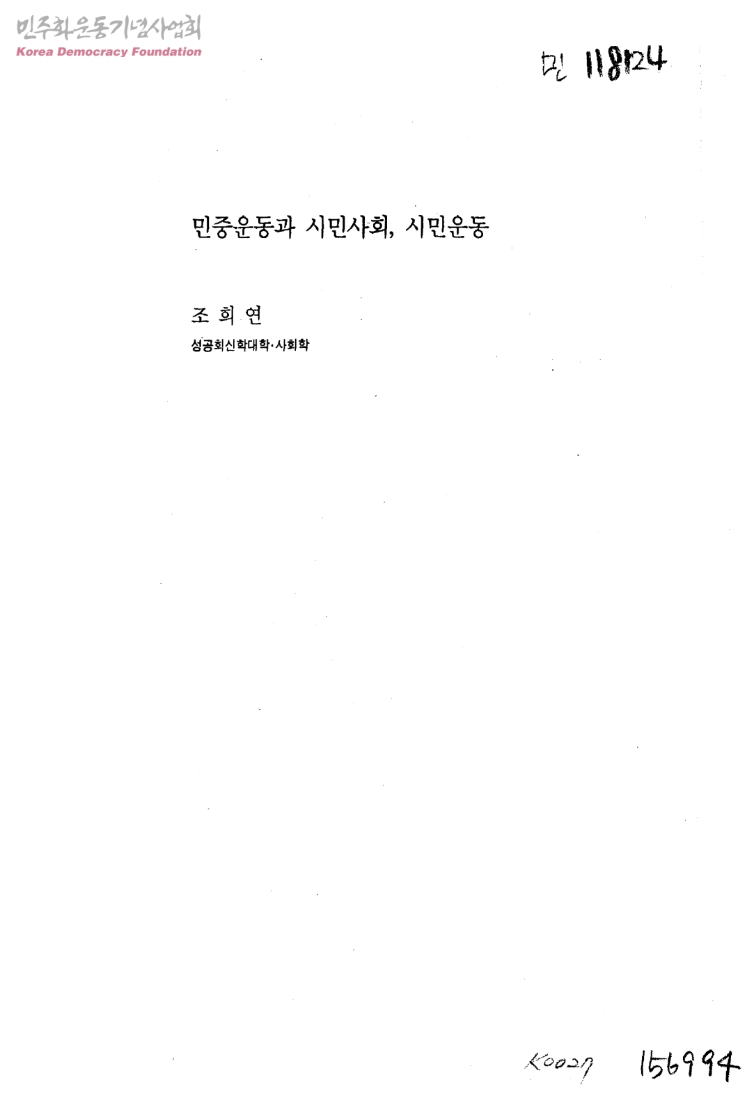 - 성공회신학대학교 사회학과 조희연
