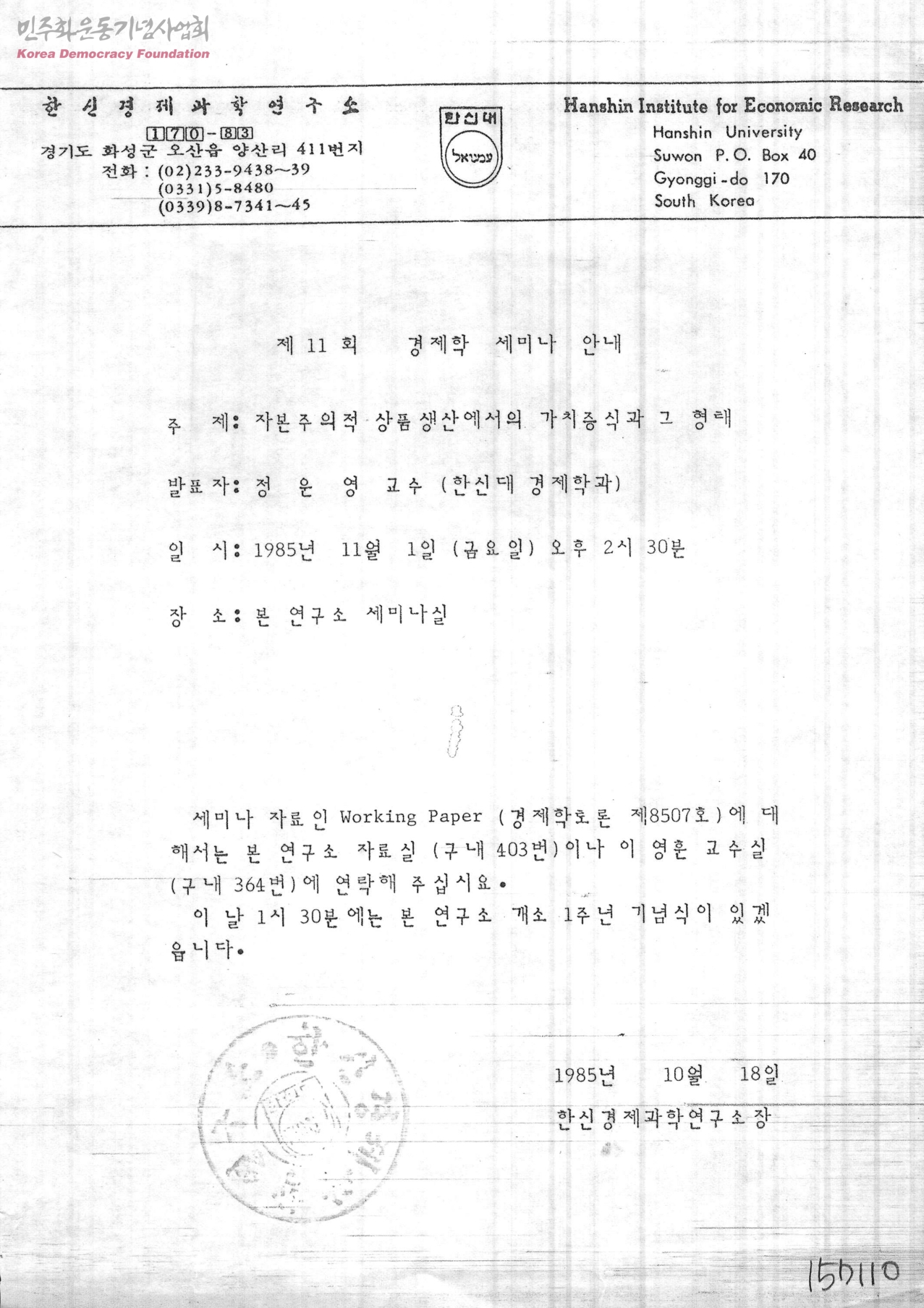 제11회 경제학 세미나 안내-자본주의적 상품생산에서의 가치증식과 그 형태
