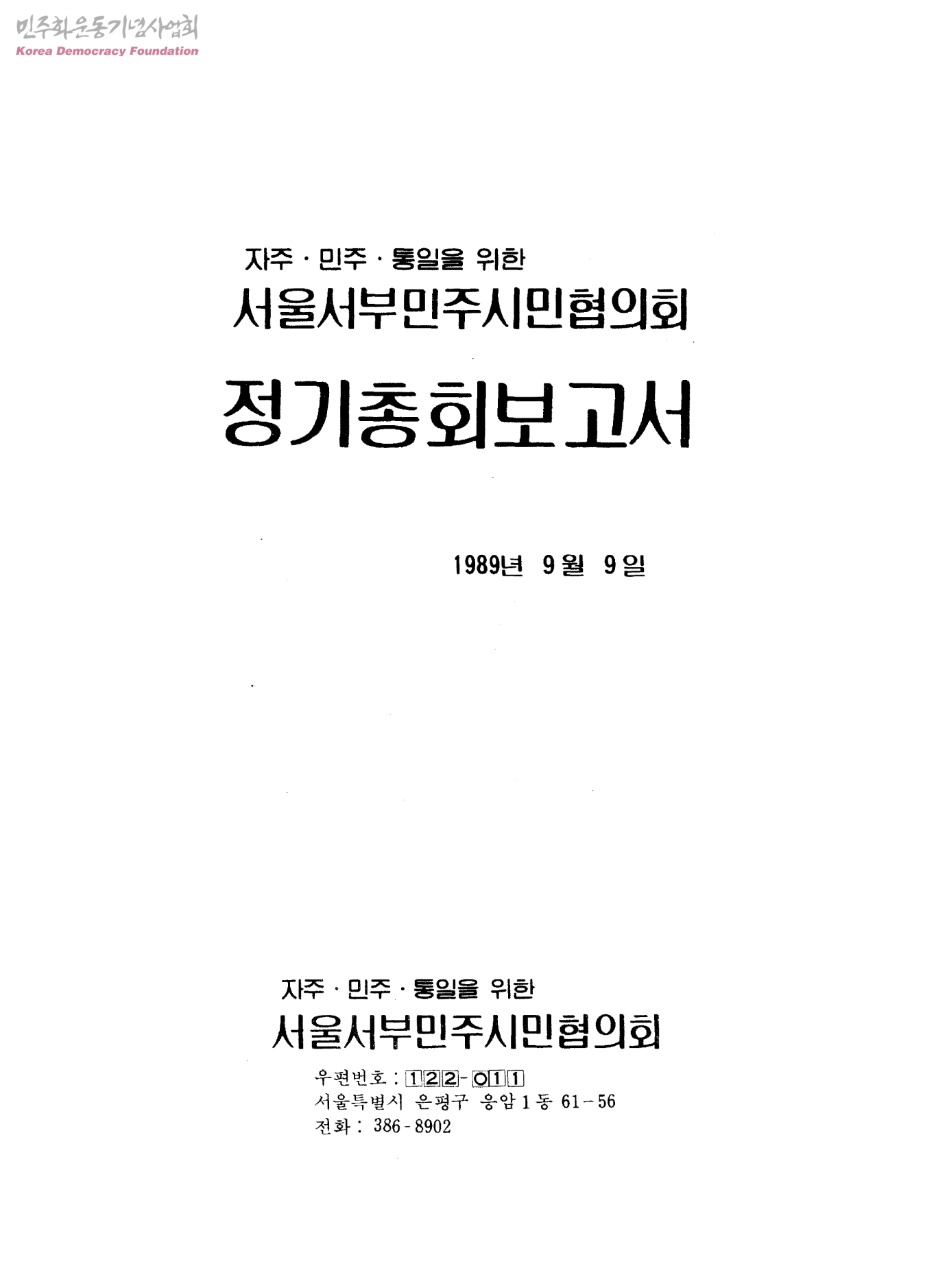 자주·민주·통일을 위한 서울서부민주시민협의회 정기총회보고서