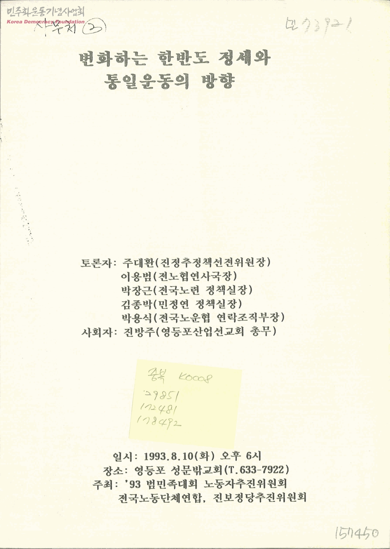 - 93범민족대회노동자추진위원회, 전국노동단체연합, 진보정당추진위원회