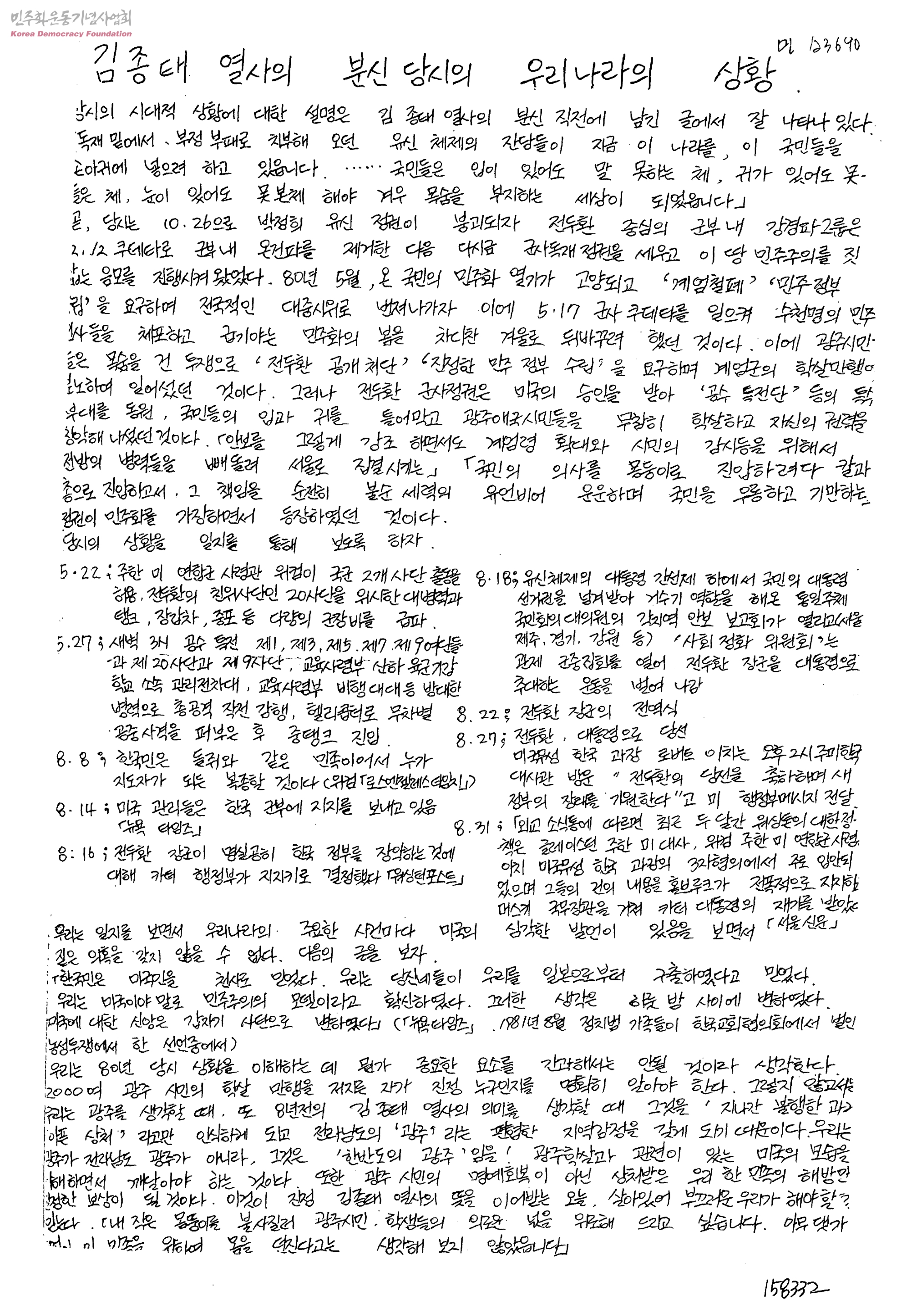 김종태 열사의 분신 당시의 우리나라의 상황