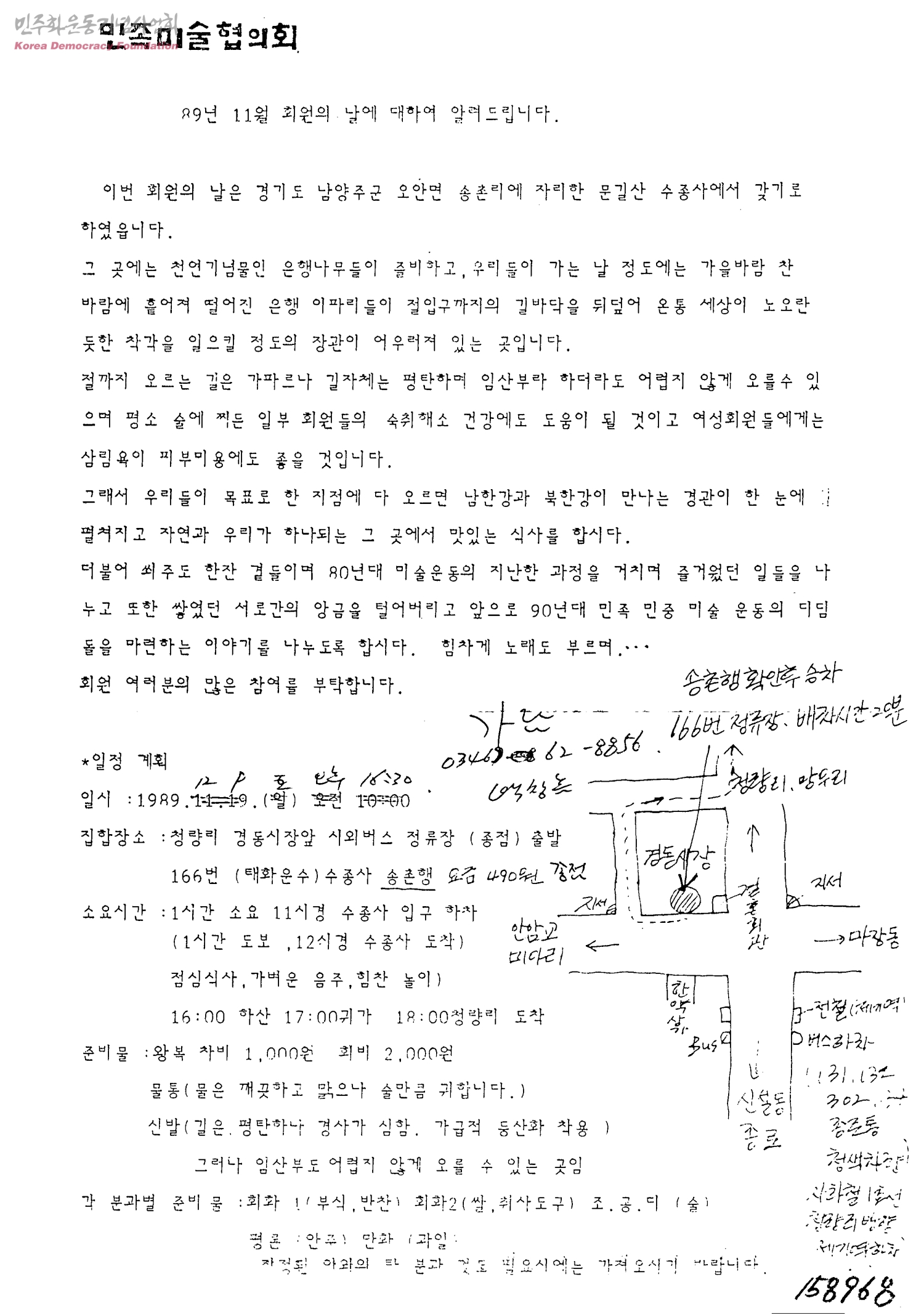 민족미술협의회 89년 11월 회원의 날에 대하여 알려드립니다