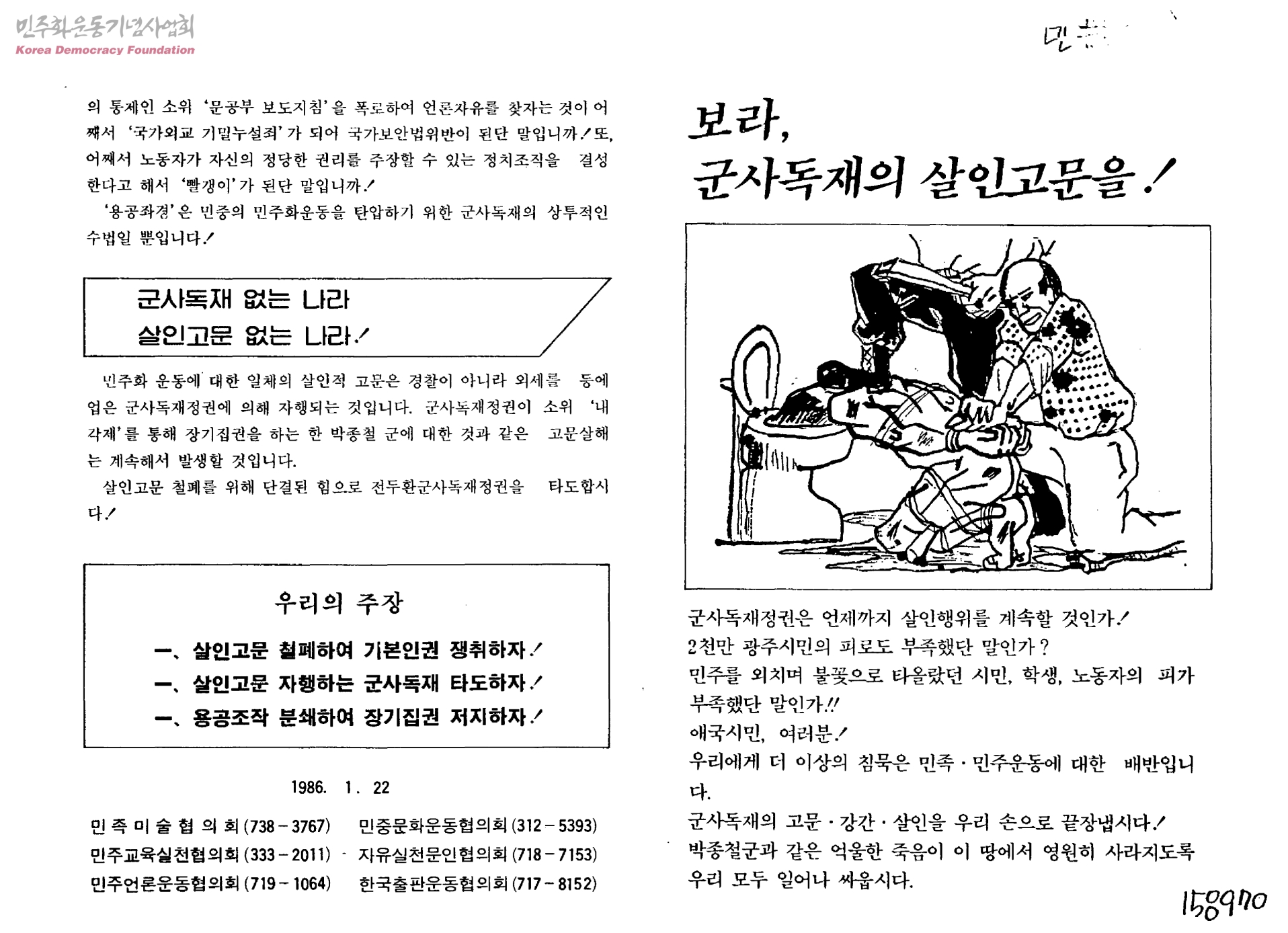 - 생산자 및 기증자가 ‘박용수’인 사진의 사용은 구매신청을 클릭하여 직접 사진 구매 신청을 하실 수 있습니다. 생산자 및 기증자가 ‘경향신문사’인 사진의 사용은 경향신문사 담당자(02-3701-1635)를 통해 구매하실 수 있습니다. 그 외의 생산자 및 기증자는 민주화운동기념사업회 사료관 담당자( hyunchaek@kdemo.or.kr / 02-6440-8961 )에 문의바랍니다.