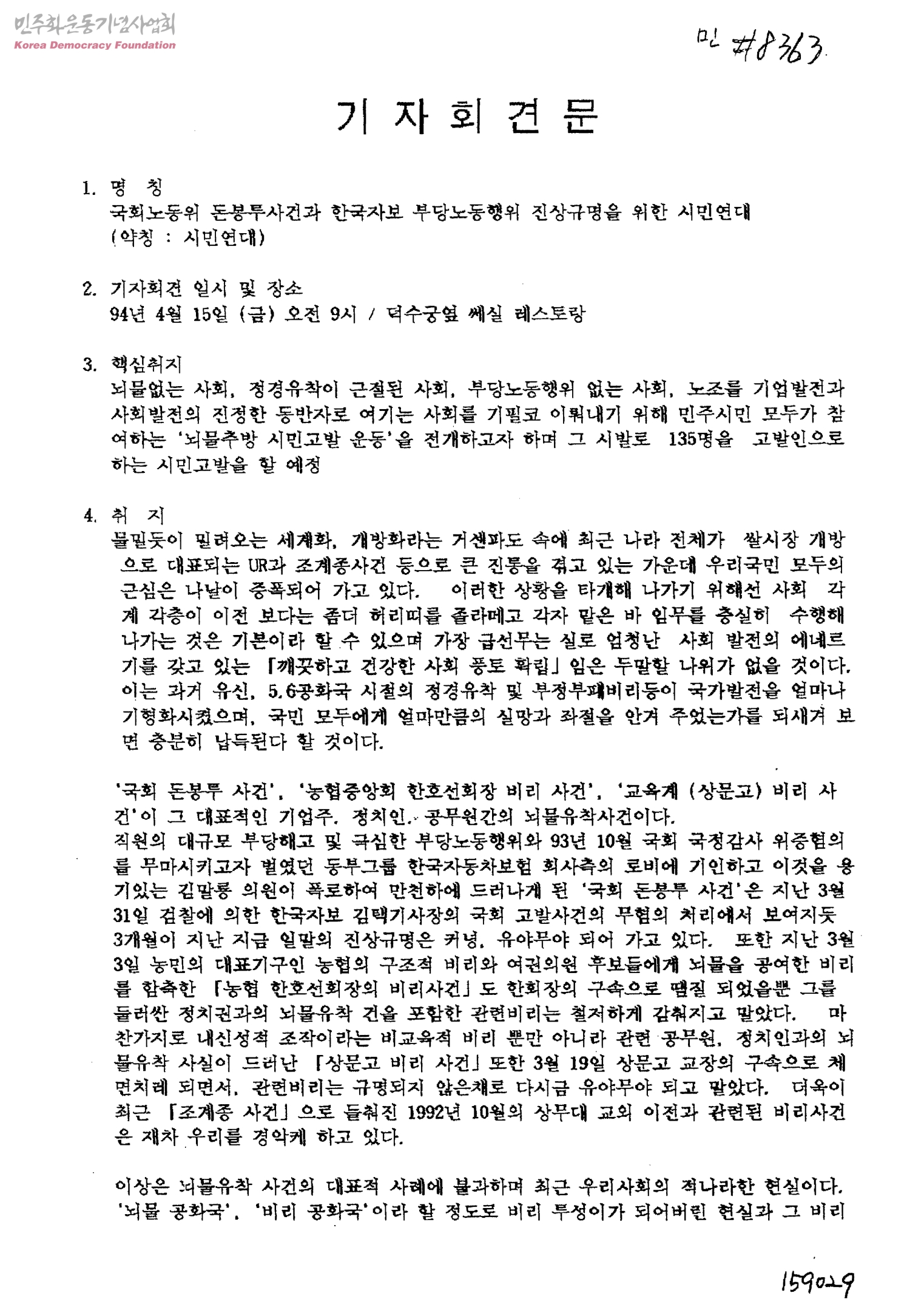 기자회견문-뇌물추방 시민고발 운동을 전개하면서