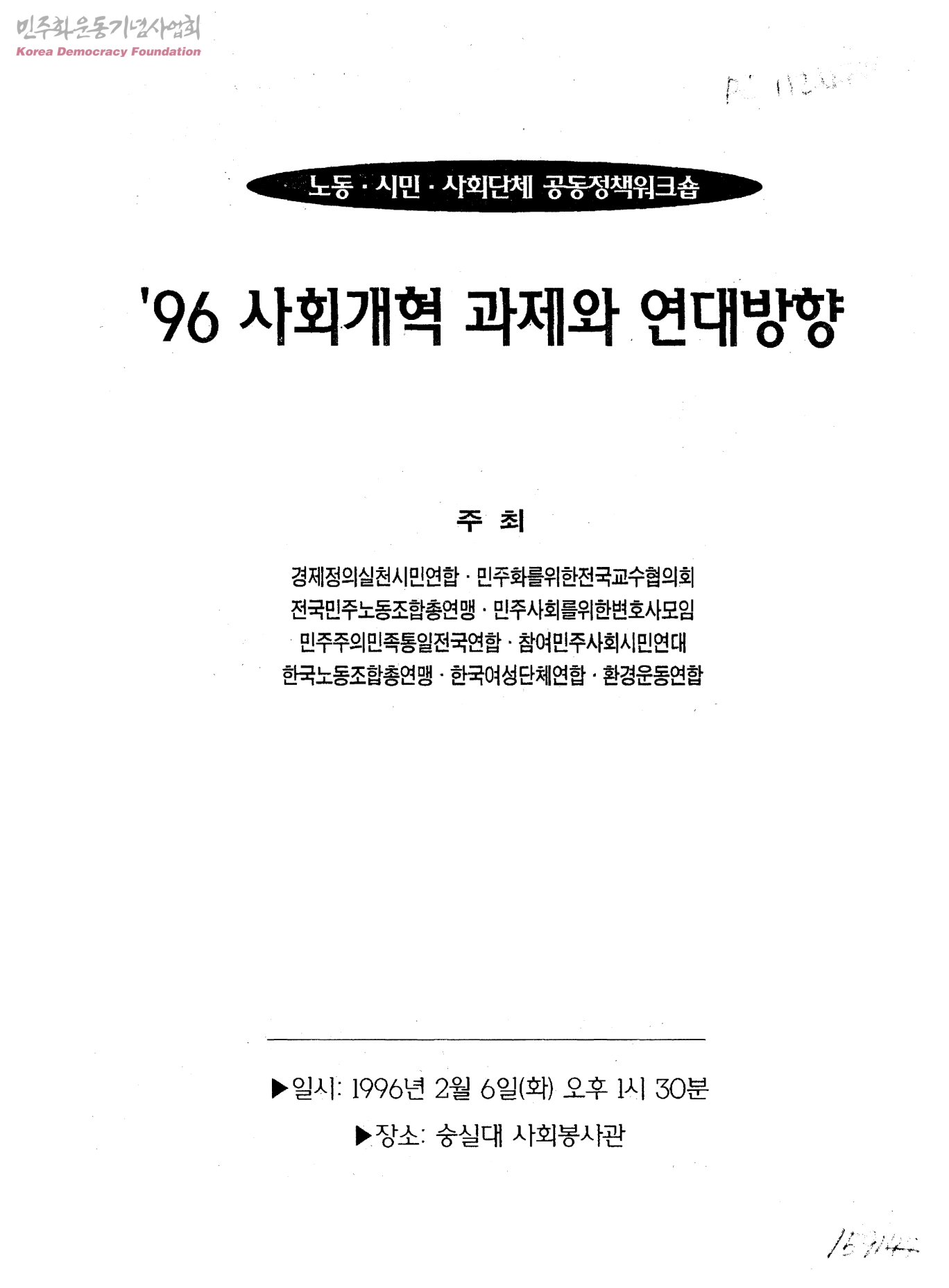 노동·시민·사회단체 공동정책워크숍-'96 사회개혁 과제와 연대방향