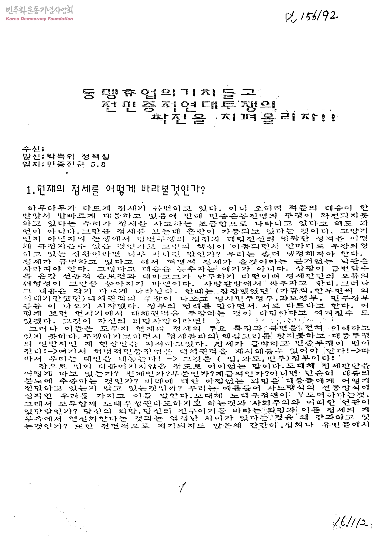 동맹휴업의 기치 들고 전민중적연대투쟁의 확전을 지펴올리자