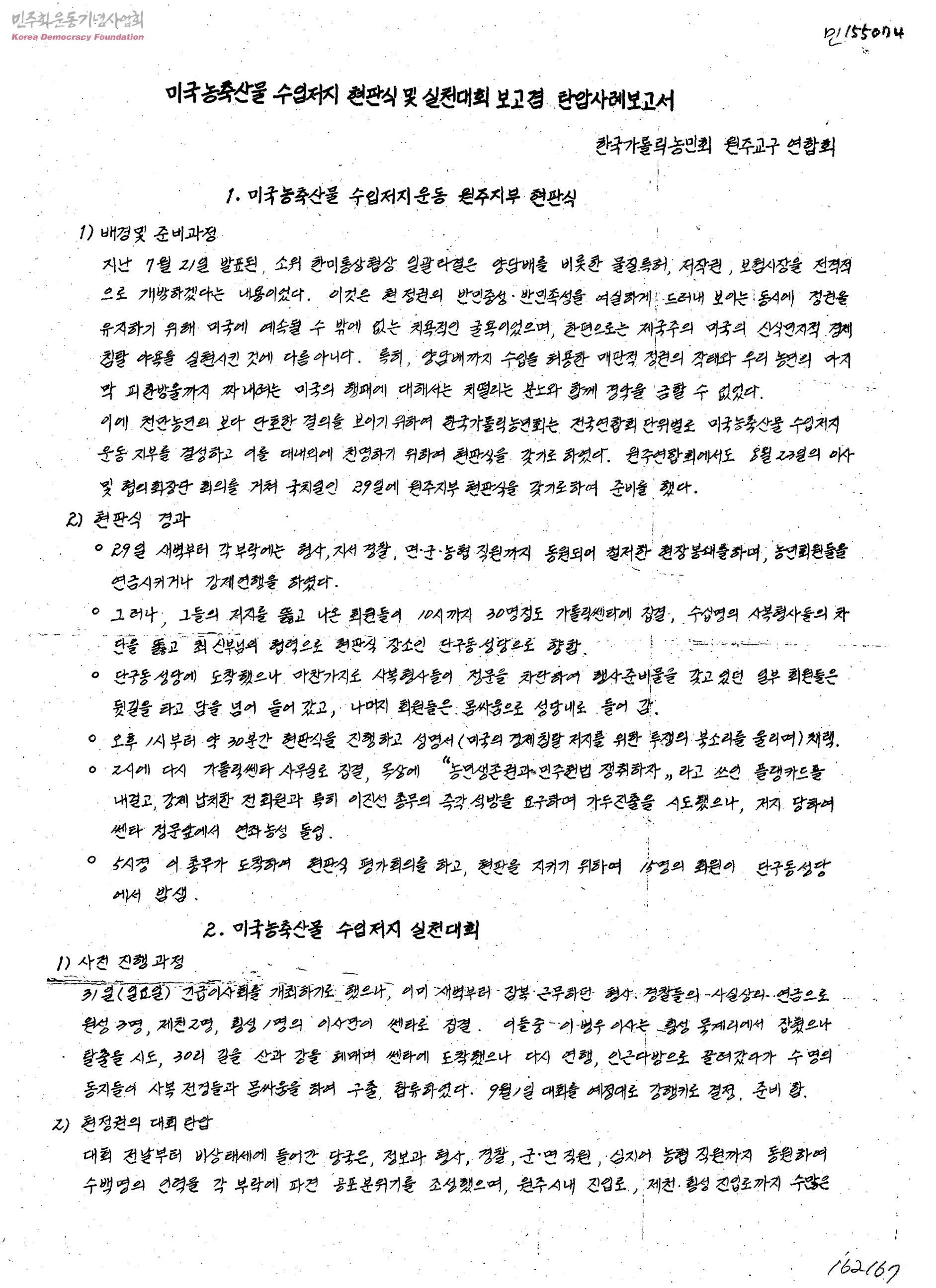 미국농축산물 수입저지 현판식 및 실천대회 보고 겸 탄압사례보고서