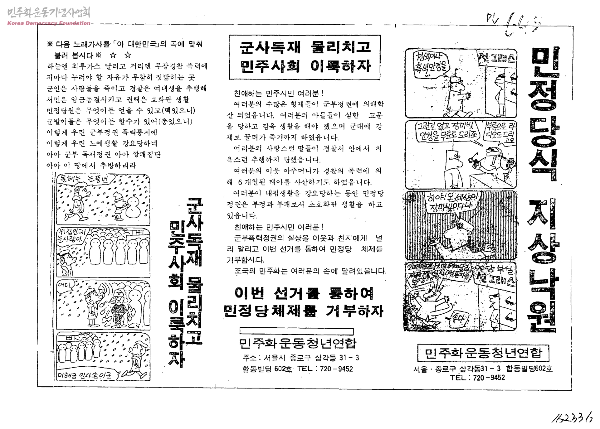 - 생산자 및 기증자가 ‘박용수’인 사진의 사용은 구매신청을 클릭하여 직접 사진 구매 신청을 하실 수 있습니다. 생산자 및 기증자가 ‘경향신문사’인 사진의 사용은 경향신문사 담당자(02-3701-1635)를 통해 구매하실 수 있습니다. 그 외의 생산자 및 기증자는 민주화운동기념사업회 사료관 담당자( hyunchaek@kdemo.or.kr / 02-6440-8961 )에 문의바랍니다.