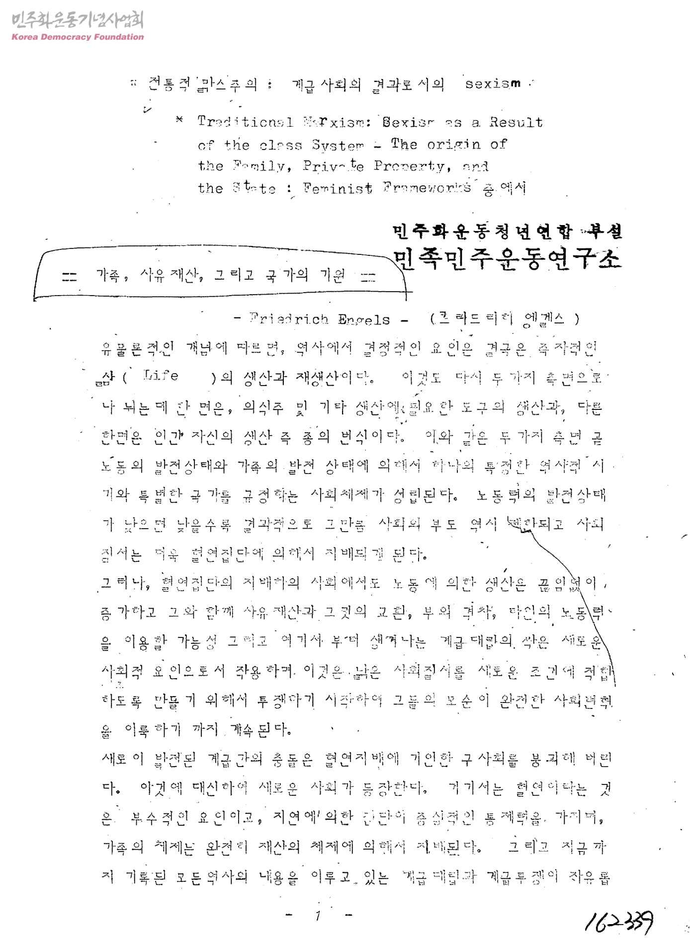 전통적 맑스주의:계급사회의 결과로서의 sexism