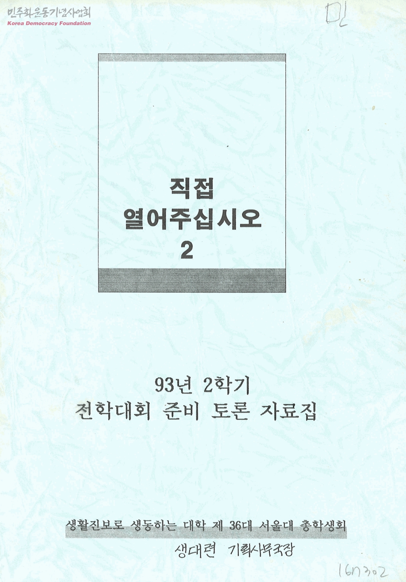 직접 열어주십시오 2-93년 2학기 전학대회 준비 토론 자료집