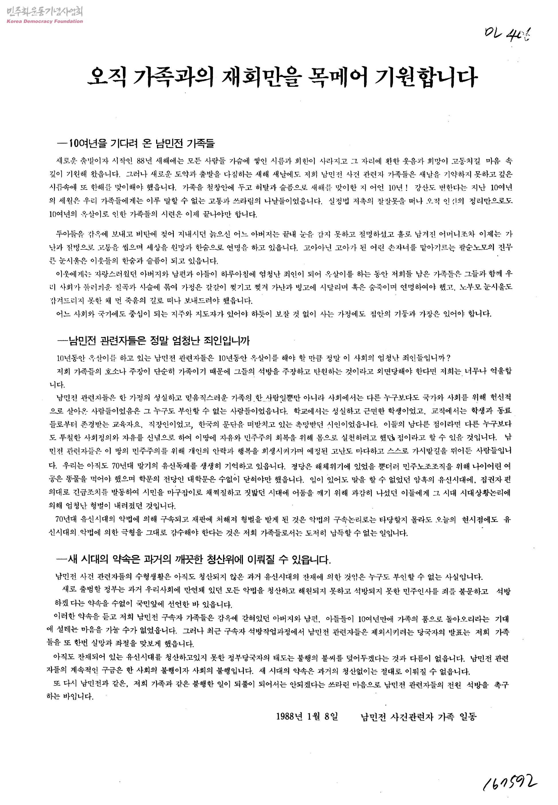 - 남민전사건관련자가족일동
