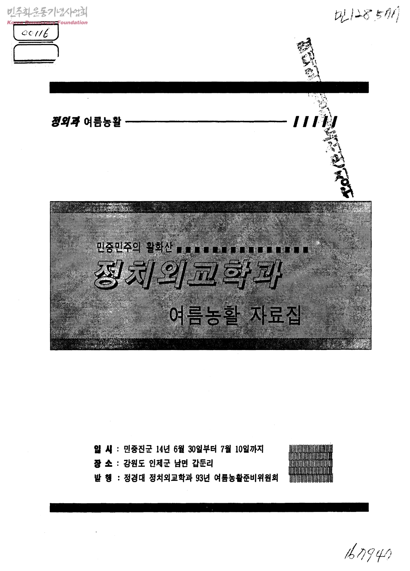 - 고려대학교 정경대 정치외교학과 93년여름농활준비위원회