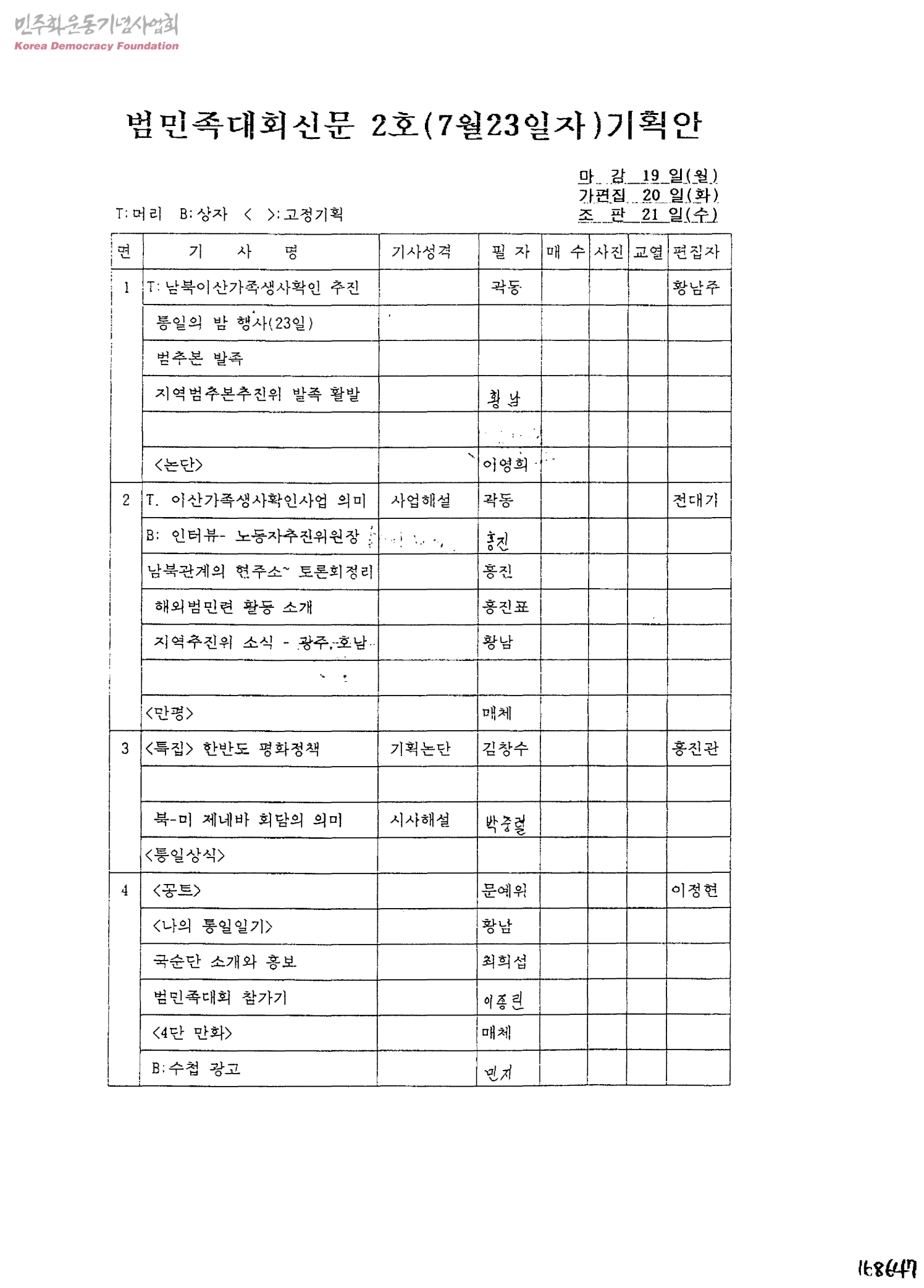 범민족대회신문 2호(7월 23일자)기획안