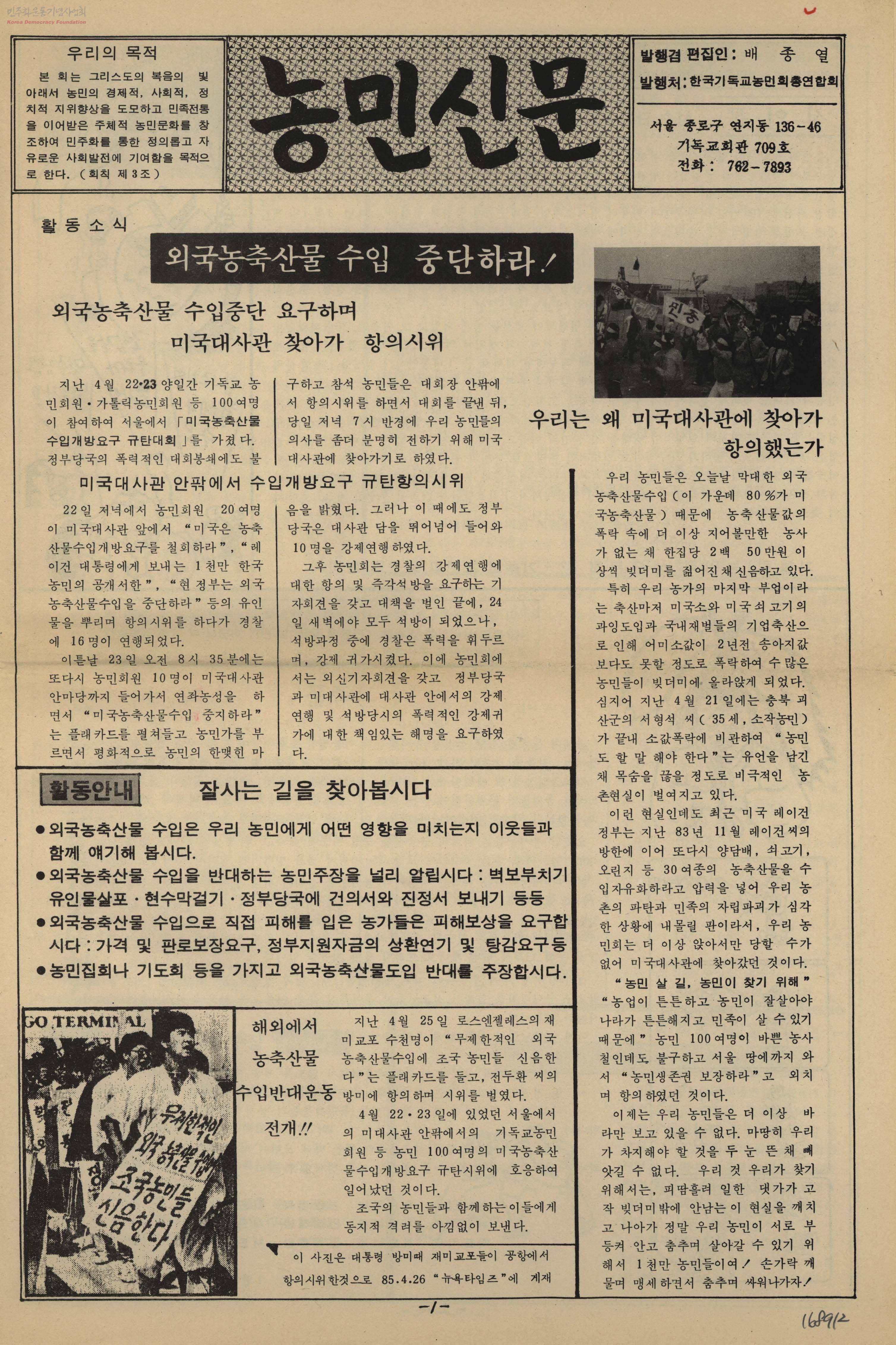 농민신문[외국농축산물 수입 중단하라!]