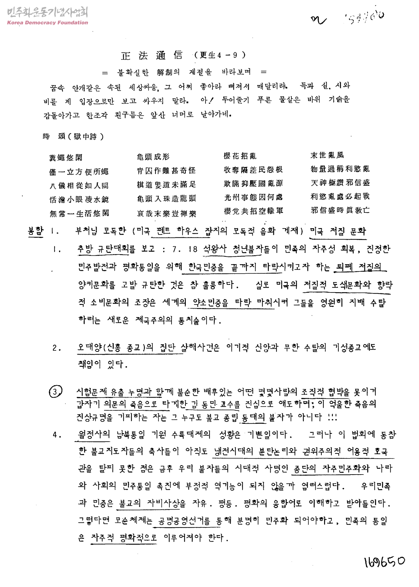 正法通信 (更生4-9)-불확실한 解制의 계절을 바라보며