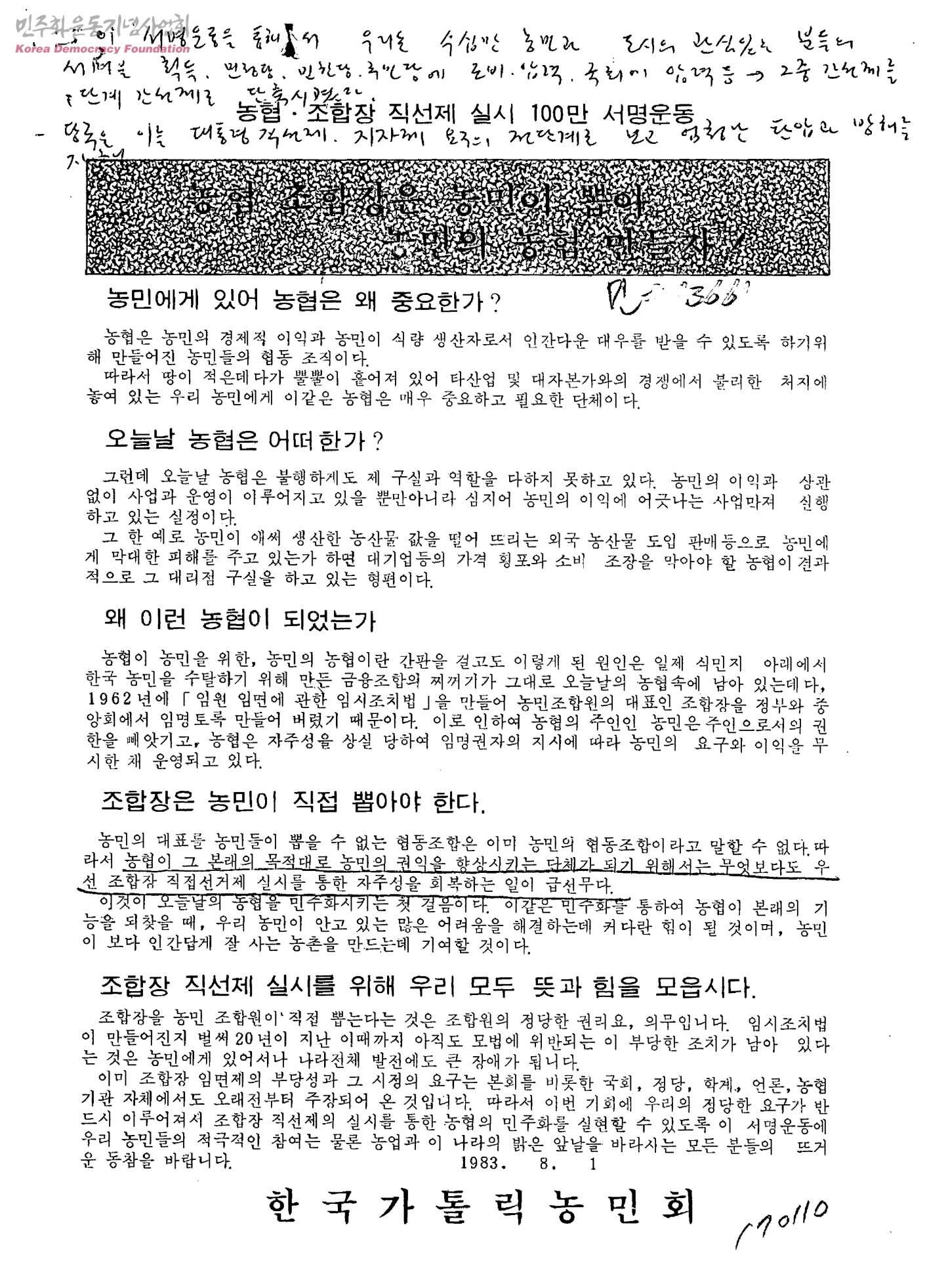 농협.조합장 직선제 실시 100만 서명운동-농협조합장은 농어민이 뽑아 농민의 농협 만들자