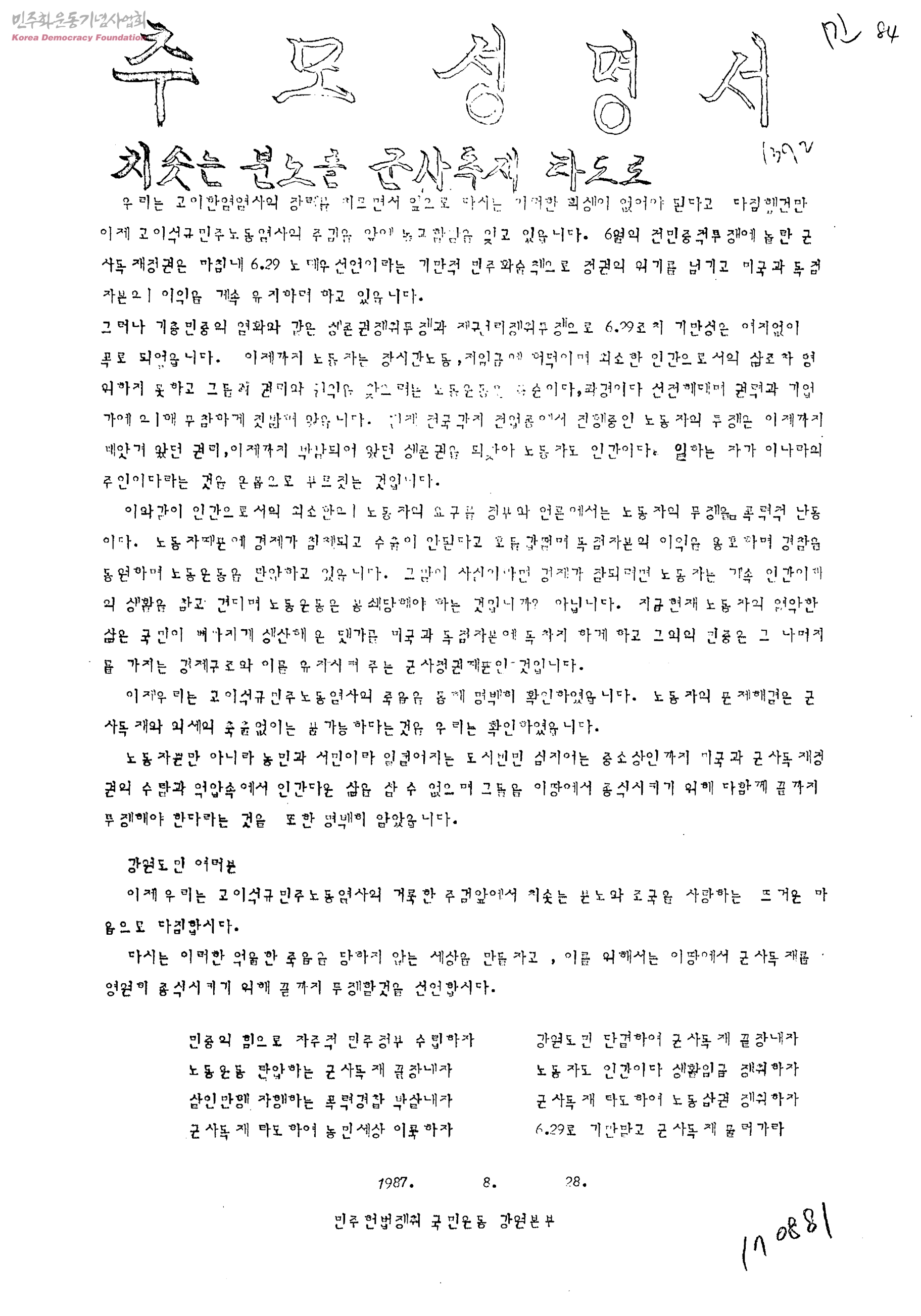 - 생산자 및 기증자가 ‘박용수’인 사진의 사용은 구매신청을 클릭하여 직접 사진 구매 신청을 하실 수 있습니다. 생산자 및 기증자가 ‘경향신문사’인 사진의 사용은 경향신문사 담당자(02-3701-1635)를 통해 구매하실 수 있습니다. 그 외의 생산자 및 기증자는 민주화운동기념사업회 사료관 담당자( h_jungwon@kdemo.or.kr / 031-361-9586 )에 문의바랍니다.