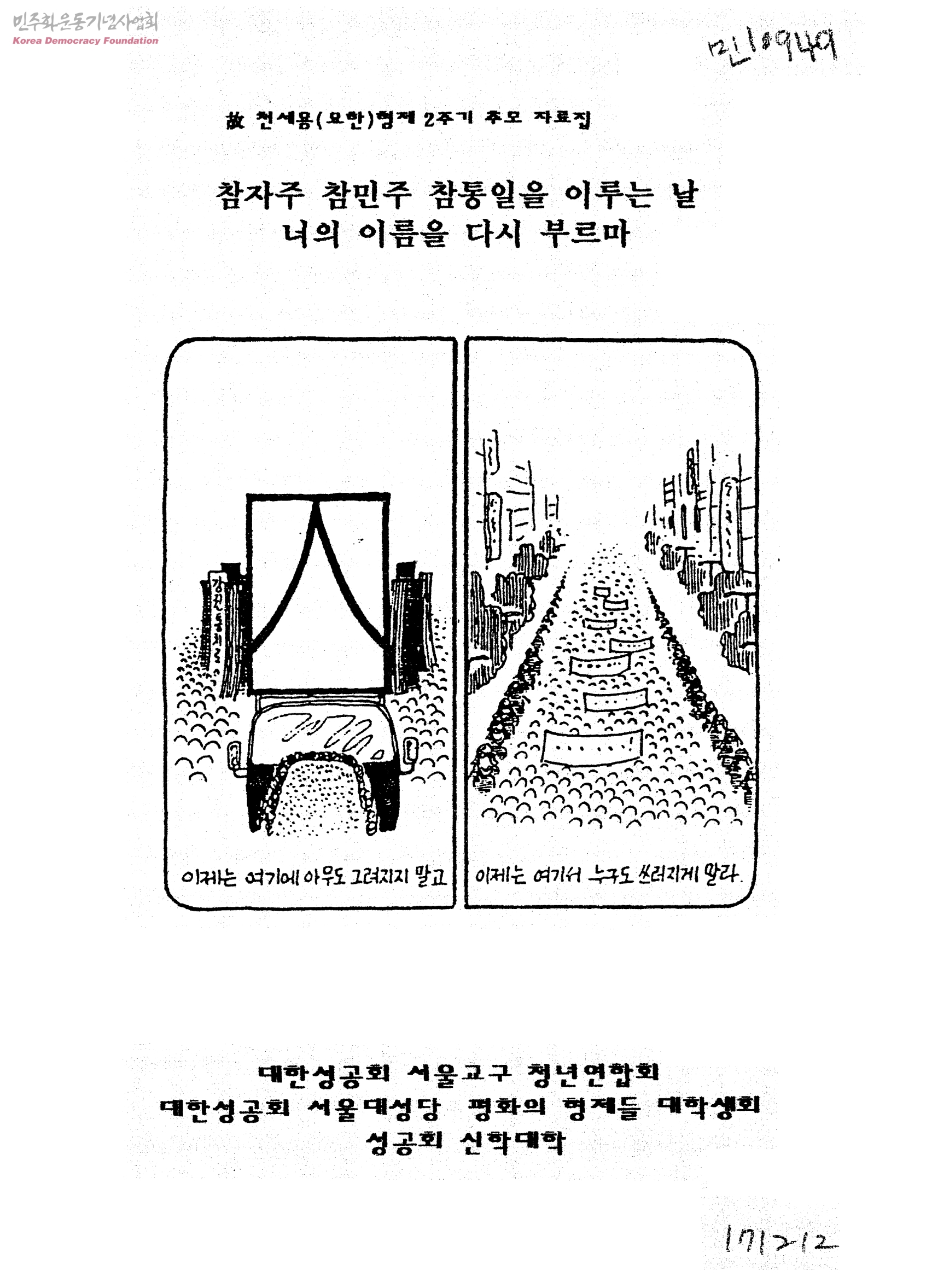 故 천세용(요한)형제 2주기 추모 자료집-참자주 참민주 참통일을 이루는 날 너의 이름을 다시 부르마