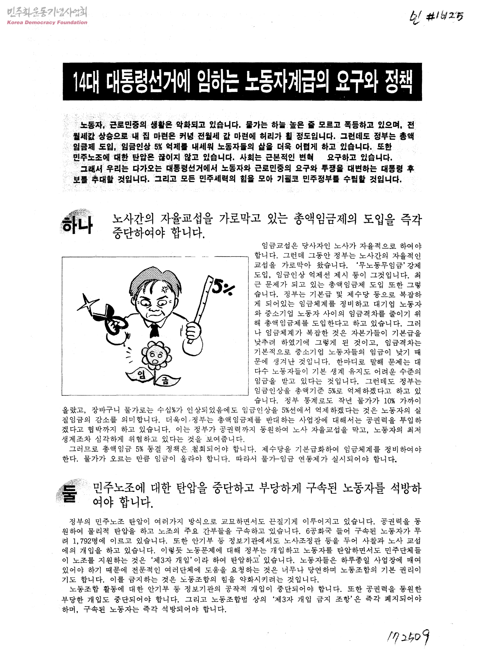 14대 대통령선거에 임하는 노동자계급의 요구와 정책