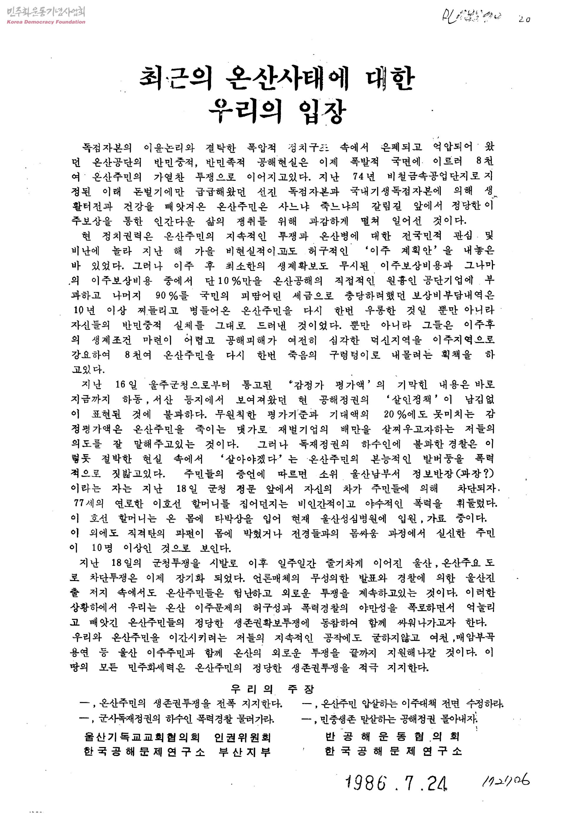 - 울산기독교교회협의회 인권위원회, 반공해운동협의회, 한국공해문제연구소 부산지부, 한국공해문제연구소