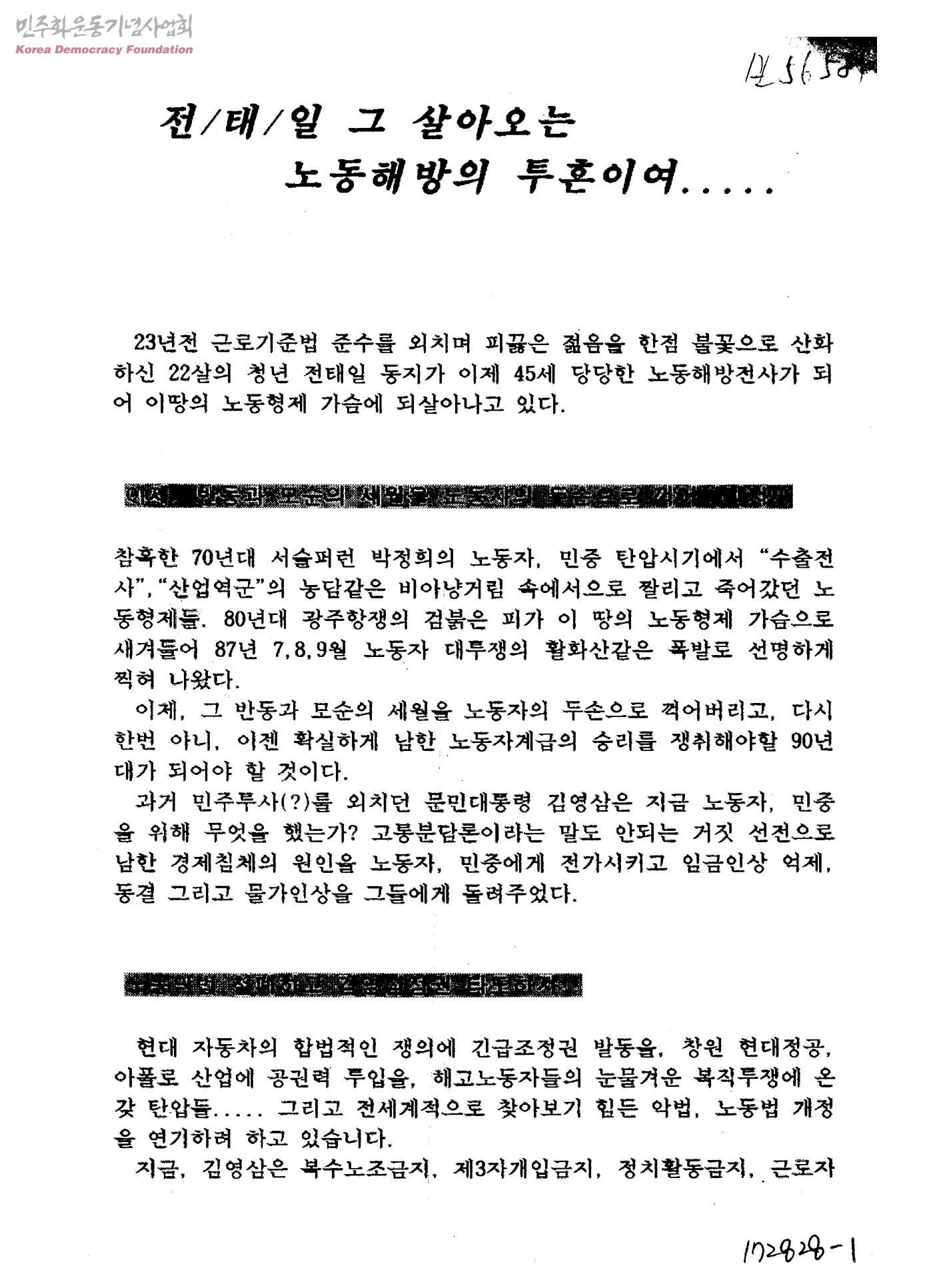 전/태/일 그 살아오는 노동해방의 투혼이여