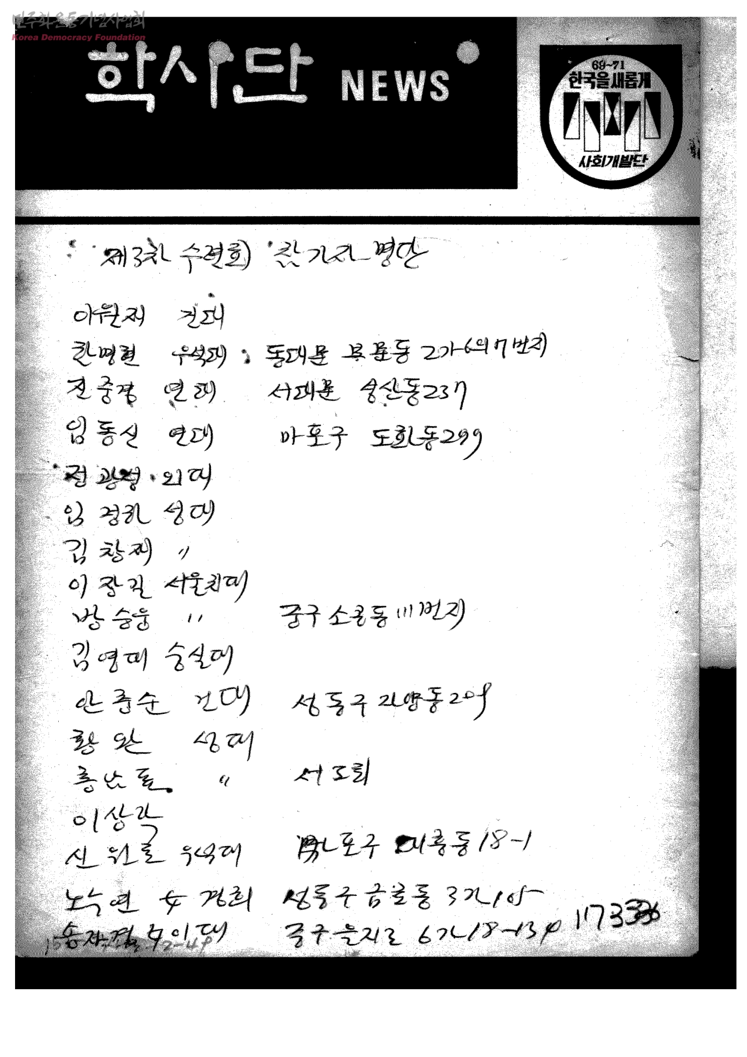 제3차 수련회 참가자명단